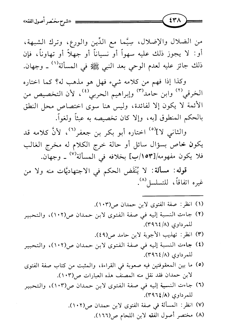 (¬8) مختصر أصول الفقه لابن اللحام ص (166).