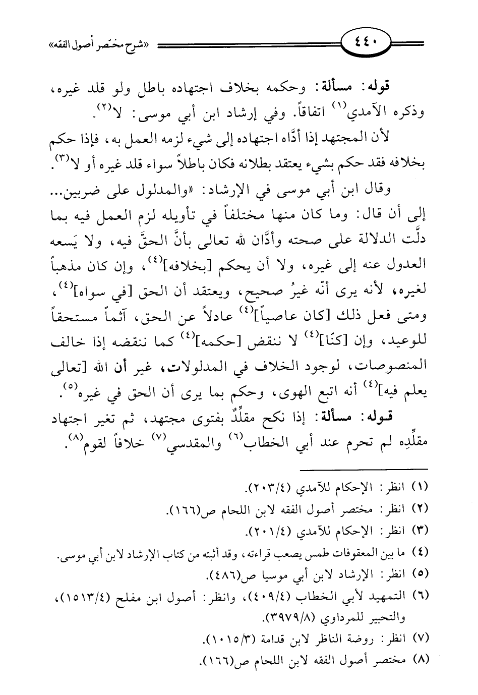 (¬8) مختصر أصول الفقه لابن اللحام ص (166).