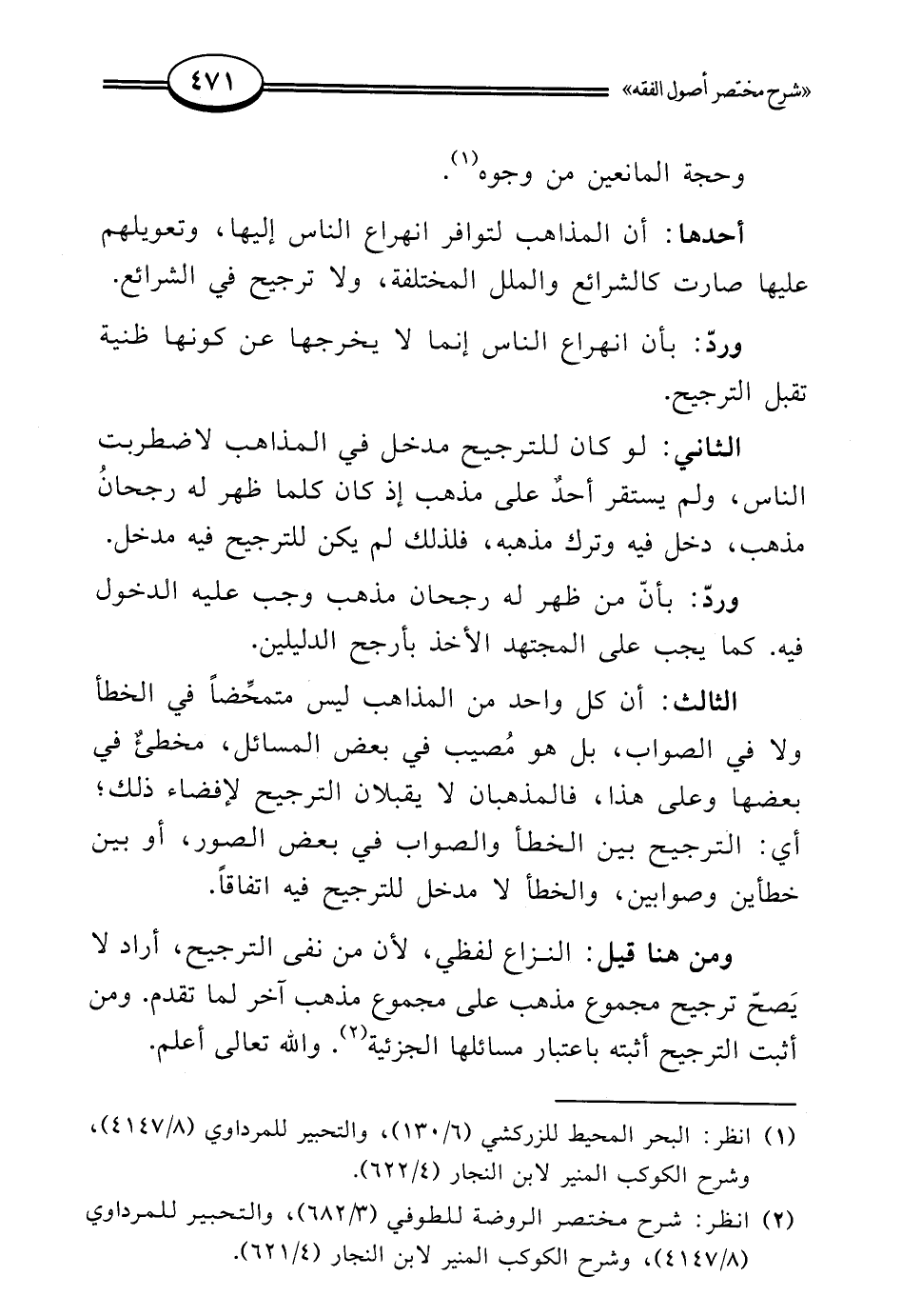 (¬2) انظر: شرح مختصر الروضة للطوفي (3/ 682)، والتحبير للمرداوي (8/ 4147)، وشرح الكوكب المنير لابن النجار (4/ 621).