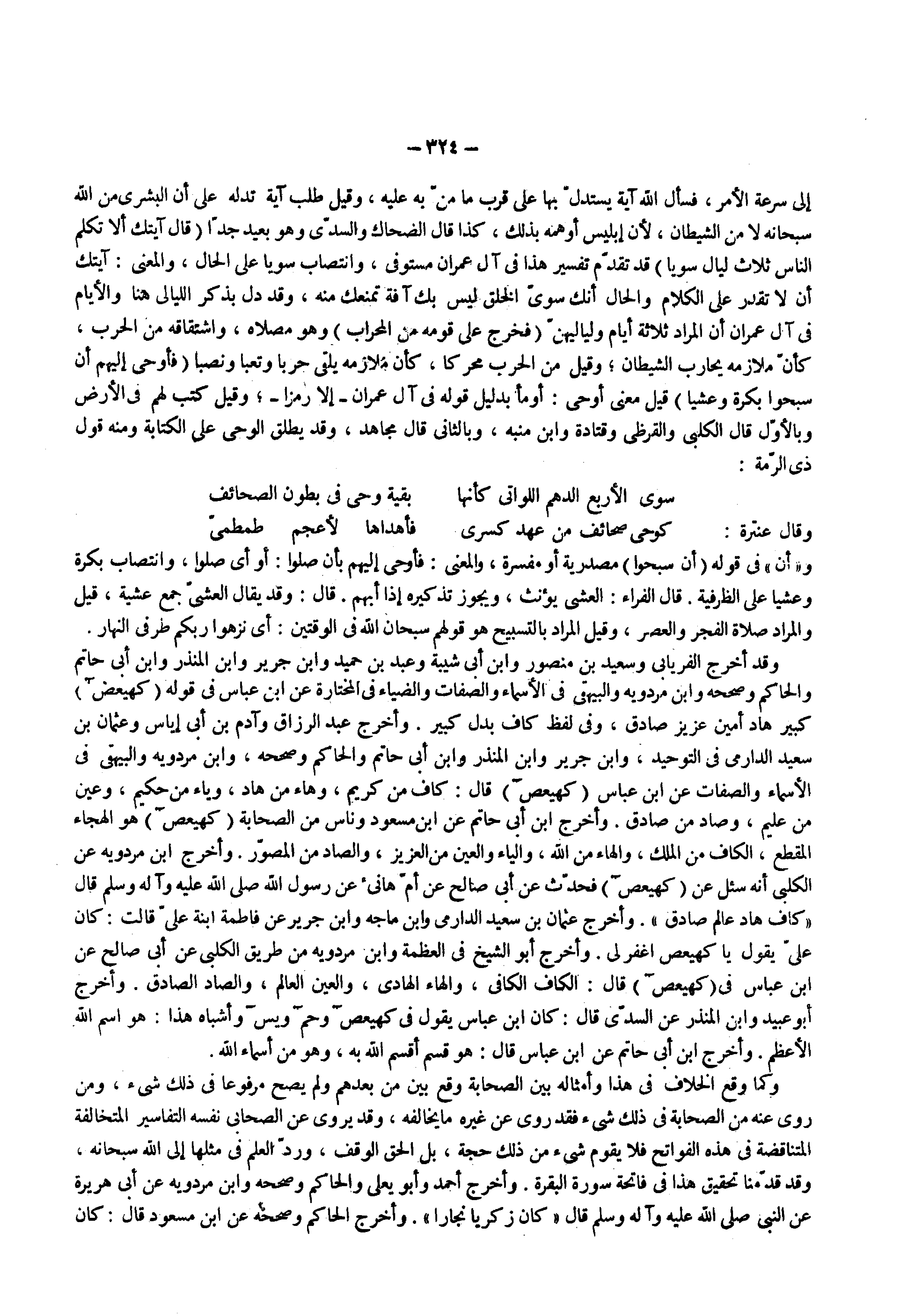 وقد أخرج الفريابي وسعيد بن منصور وابن أبى شيبة عبد بن حميد وابن جرير وابن المنذر وابن أبى حاتم والحاكم وصححه وابن مردويه والبيهقى فى الأسماء والصفات والضياء فى المختارة عن ابن عباس فى قوله ) كهيعص ( كبير هاد أمين عزيز صادق وفى لفظ كاف بدل كبير وأخرج عبد الرزاق وآدم بن أبى إياس وعثمان بن سعيد الدارمي فى التوحيد وابن جرير وابن المنذر وابن أبى جاتم والحاكم وصححه وابن مردويه والبيهقى فى الأسماء والصفات عن ابن عباس ) كهيعص ( قال كاف من كريم وهاء من هاد وياء من حكيم وعين من عليم وصاد من صادق وأخرج ابن أبى حاتم عن ابن مسعود وناس من الصحابة ) كهيعص ( هو الهجاء المقطع الكاف من الملك والهاء من الله والياء والعين من العزيز والصاد من المصور وأخرج ابن مردويه عن الكلبى أنه سئل عن ) كهيعص ( فحدث عن أبى صالح عن أم هانئ عن رسول الله ( صلى الله عليه وسلم ) قال كاف هاد عالم صادق وأخرج عثمان بن سعيد الدارمي وابن ماجه وابن جرير عن فاطمة ابنة علي قالت كان علي يقول يا كهيعص اغفر لي وأخرج أبو الشيخ فى العظمة وابن مردويه من طريق الكلبي عن أبى صالح عن ابن عباس فى ) كهيعص ( قال الكاف الكافى والهاء الهادي والعين العالم والصاد الصادق وأخرج أبو عبيد وابن المنذر عن السدى قال كان ابن عباس يقول فى كهيعص وحم ويس وأشباه هذا هو اسم الله الأعظم وأخرج ابن أبى حاتم عن ابن عباس قال هو قسم أقسم الله به وهو من أسماء الله