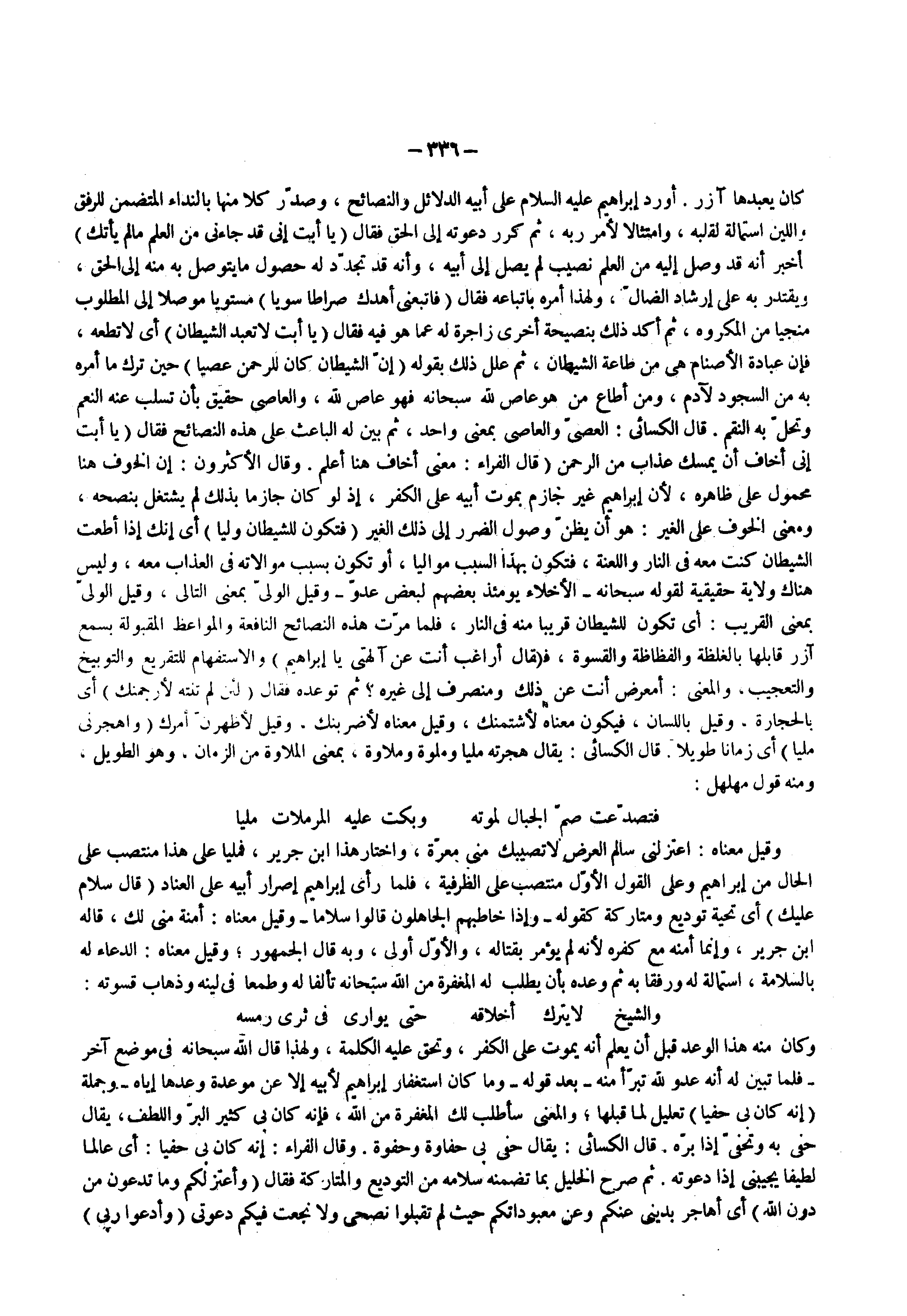 وقيل معناه اعتزلنى سالم العرض لا تصيبك مني معرة واختار هذا ابن جرير فمليا على هذا منتصب على الحال من إبراهيم وعلى القول الأول منتصب على الظرفية