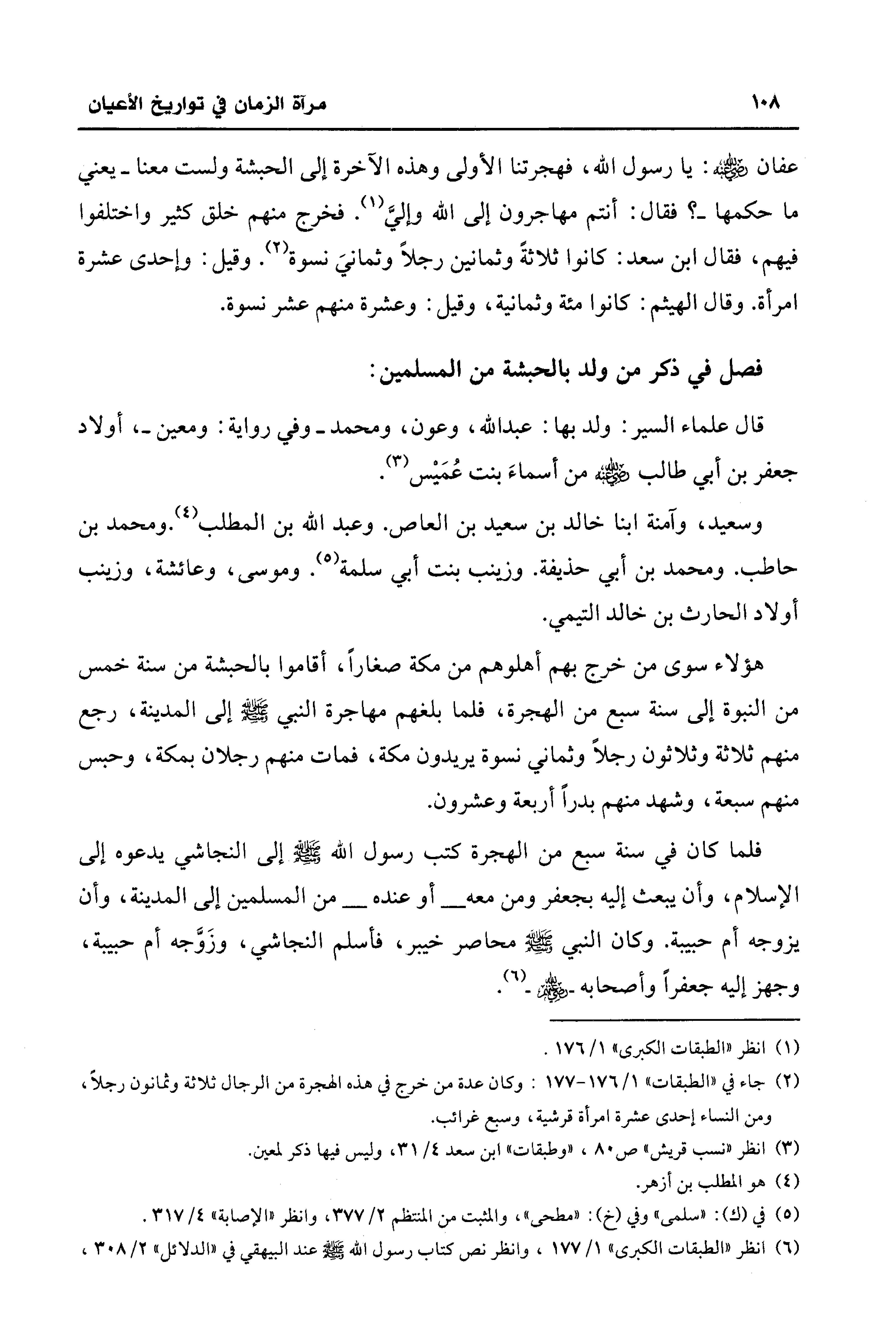 هؤلاء سوى من خرج بهم أهلوهم من مكة صغارًا، أقاموا بالحبشة من سنة خمس من النبوة إلى سنة سبع من الهجرة، فلما بلغهم مهاجرة النبي - صلى الله عليه وسلم - إلى المدينة، رجع منهم ثلاثة وثلاثون رجلًا وثماني نسوة يريدون مكة، فمات منهم رجلان بمكة، وحبس منهم سبعة، وشهد منهم بدرًا أربعة وعشرون.