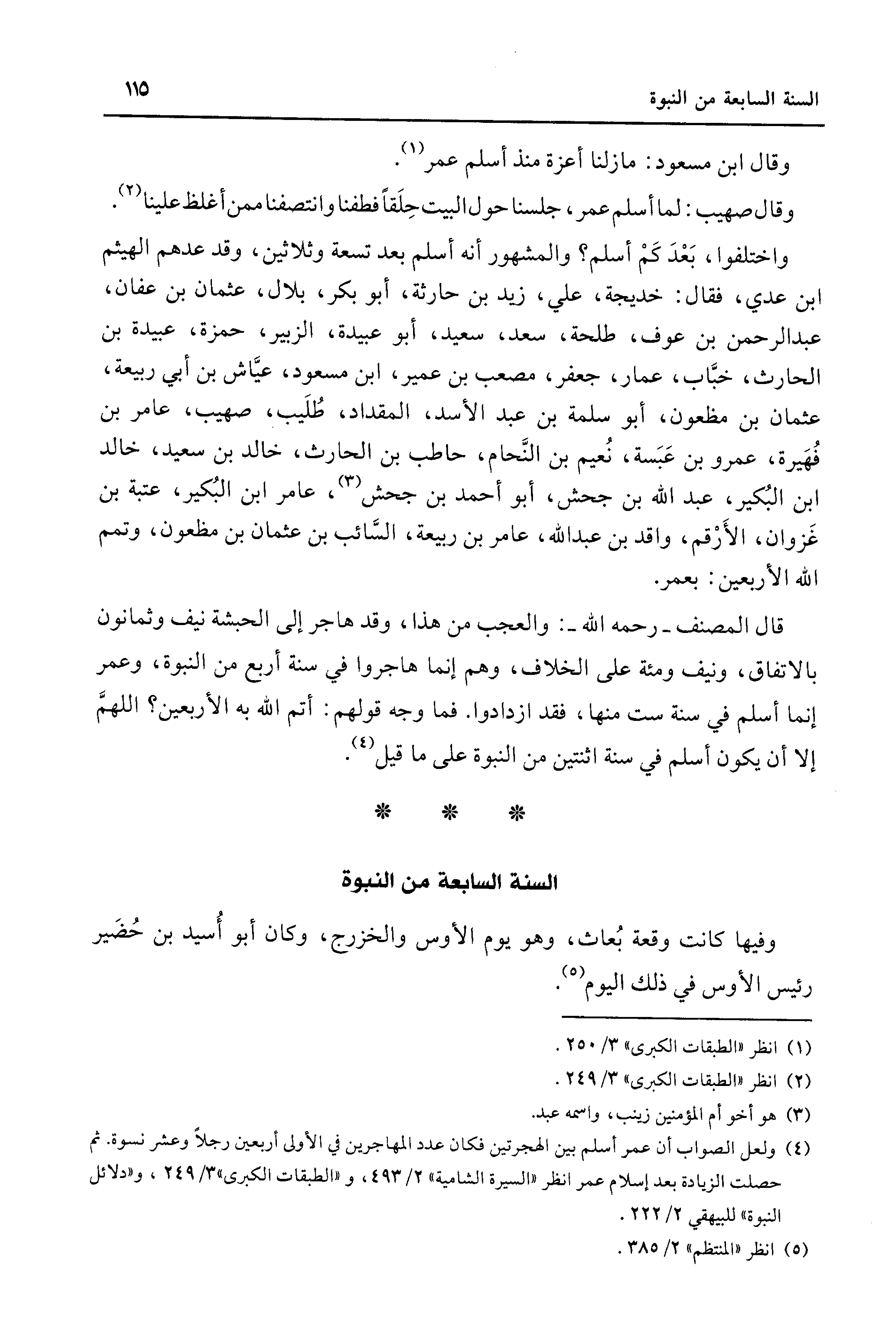 قال المصنف -رحمه الله-: والعجب من هذا، وقد هاجر إلى الحبشة نيف وثمانون بالاتفاق، ونيف ومئة على الخلاف، وهم إنما هاجروا في سنة أربع من النبوة، وعمر إنما أسلم في سنة ست منها، فقد ازدادوا. فما وجه قولهم: أتم الله به الأربعين؟ اللهمَّ إلا أن يكون أسلم في سنة اثنتين من النبوة على ما قيل (¬4).