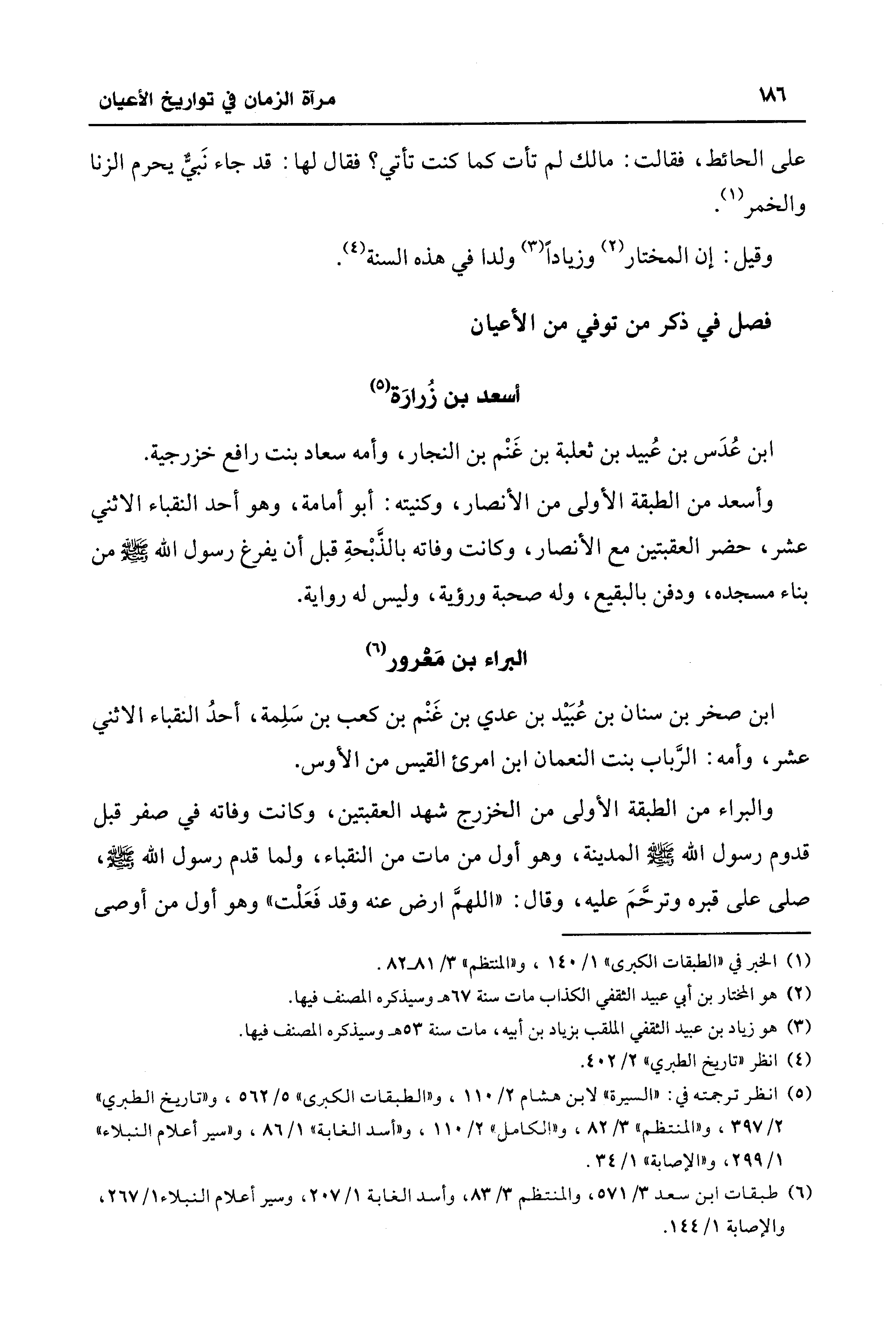(¬6) طبقات ابن سعد 3/ 571، والمنتظم 3/ 83، وأسد الغابة 1/ 207، وسير أعلام النبلاء 1/ 267، والإصابة 1/ 144.