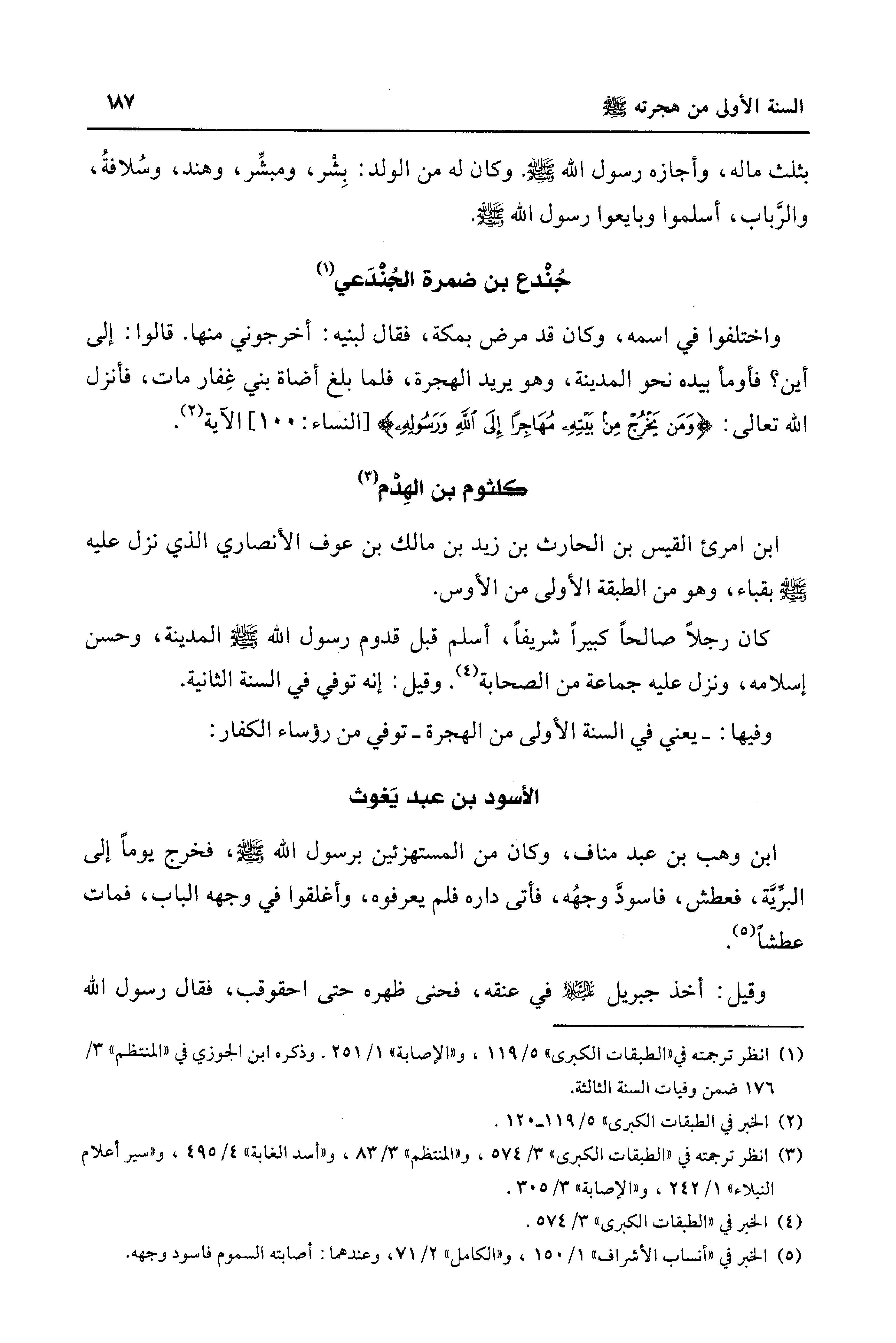 (¬1) انظر ترجمته في "الطبقات الكبرى" 5/ 119، و"الإصابة" 1/ 251. وذكره ابن الجوزي في "المنتظم" 3/ 176 ضمن وفيات السنة الثالثة.