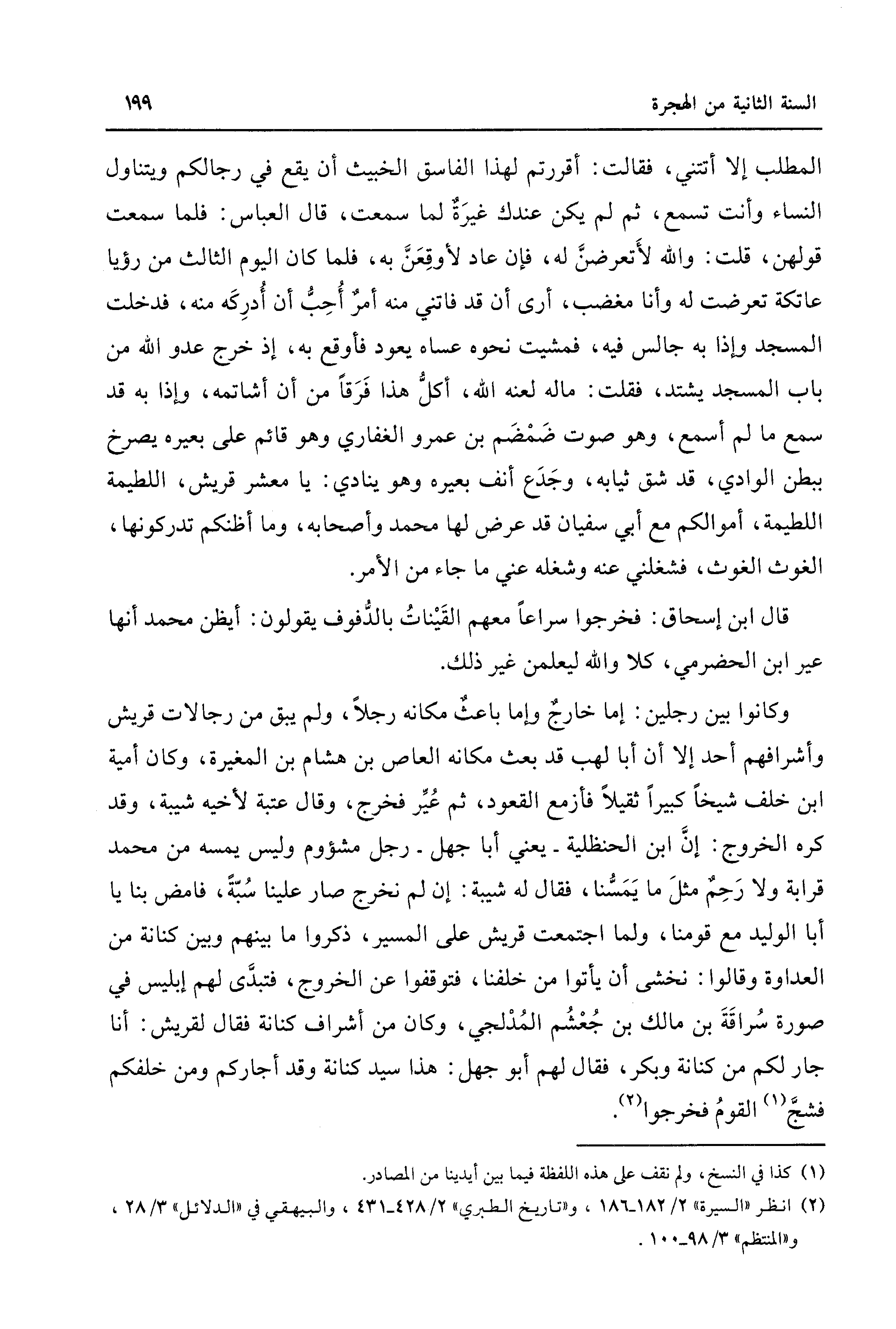 (¬2) انظر "السيرة" 2/ 182 - 186، و"تاريخ الطبري" 2/ 428 - 431، والبيهقي في "الدلائل" 3/ 28، و"المنتظم" 3/ 98 - 100.