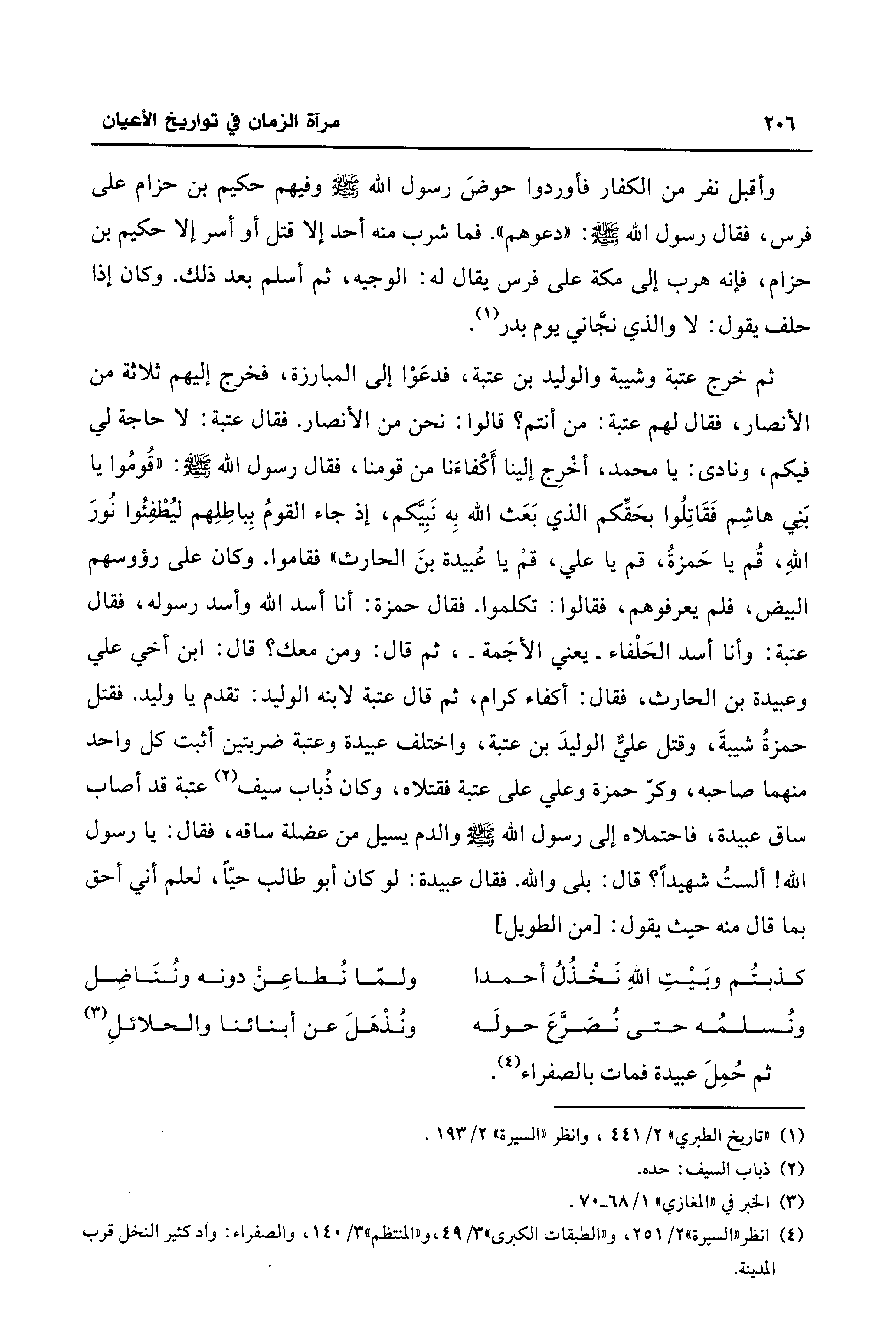 (¬4) انظر "السيرة" 2/ 251، و"الطبقات الكبرى" 3/ 49، و"المنتظم" 3/ 140، والصفراء: واد كثير النخل قرب المدينة.