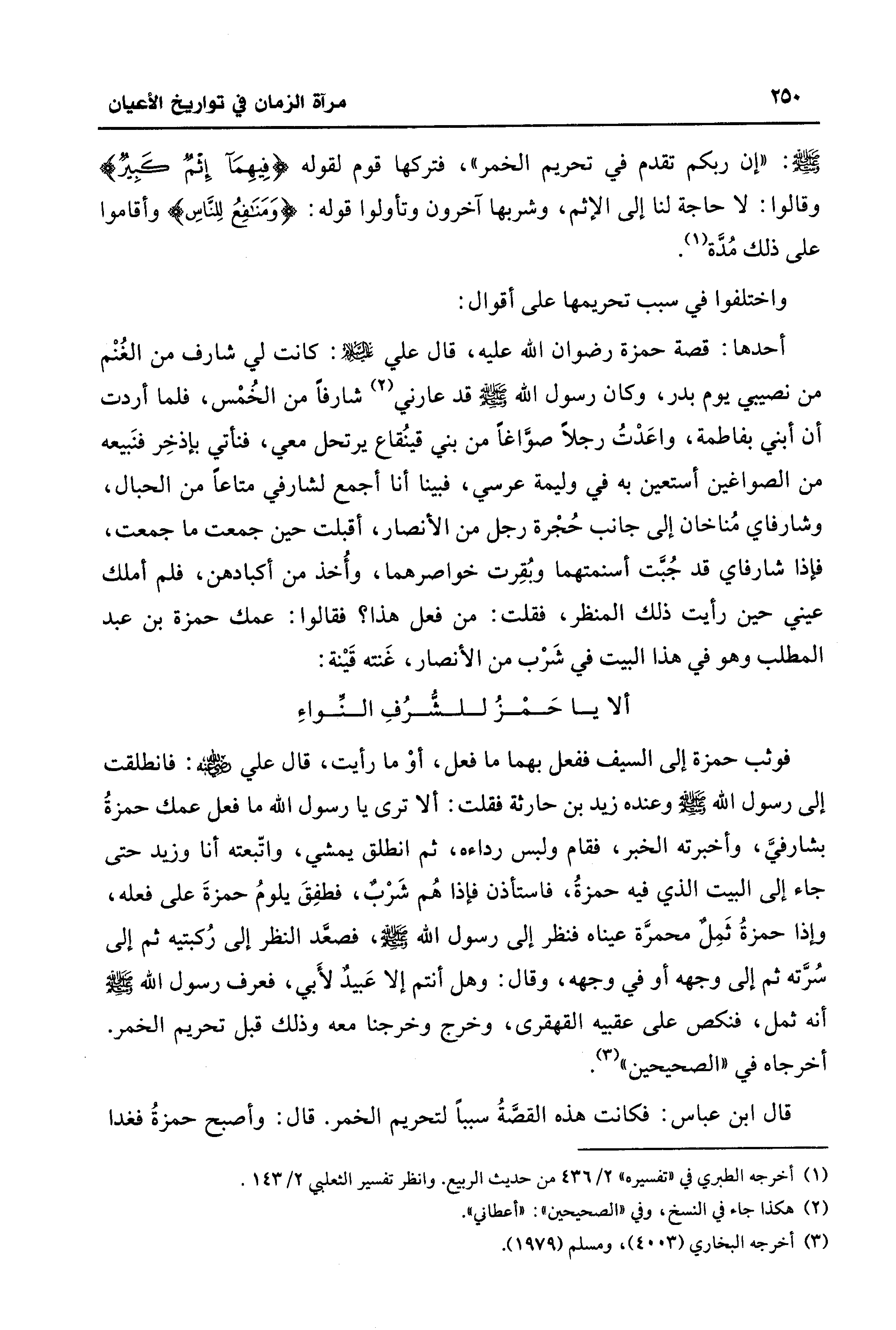 قال ابن عباس: فكانت هذه القصَّةُ سببًا لتحريم الخمر. قال: وأصبح حمزةُ فغدا