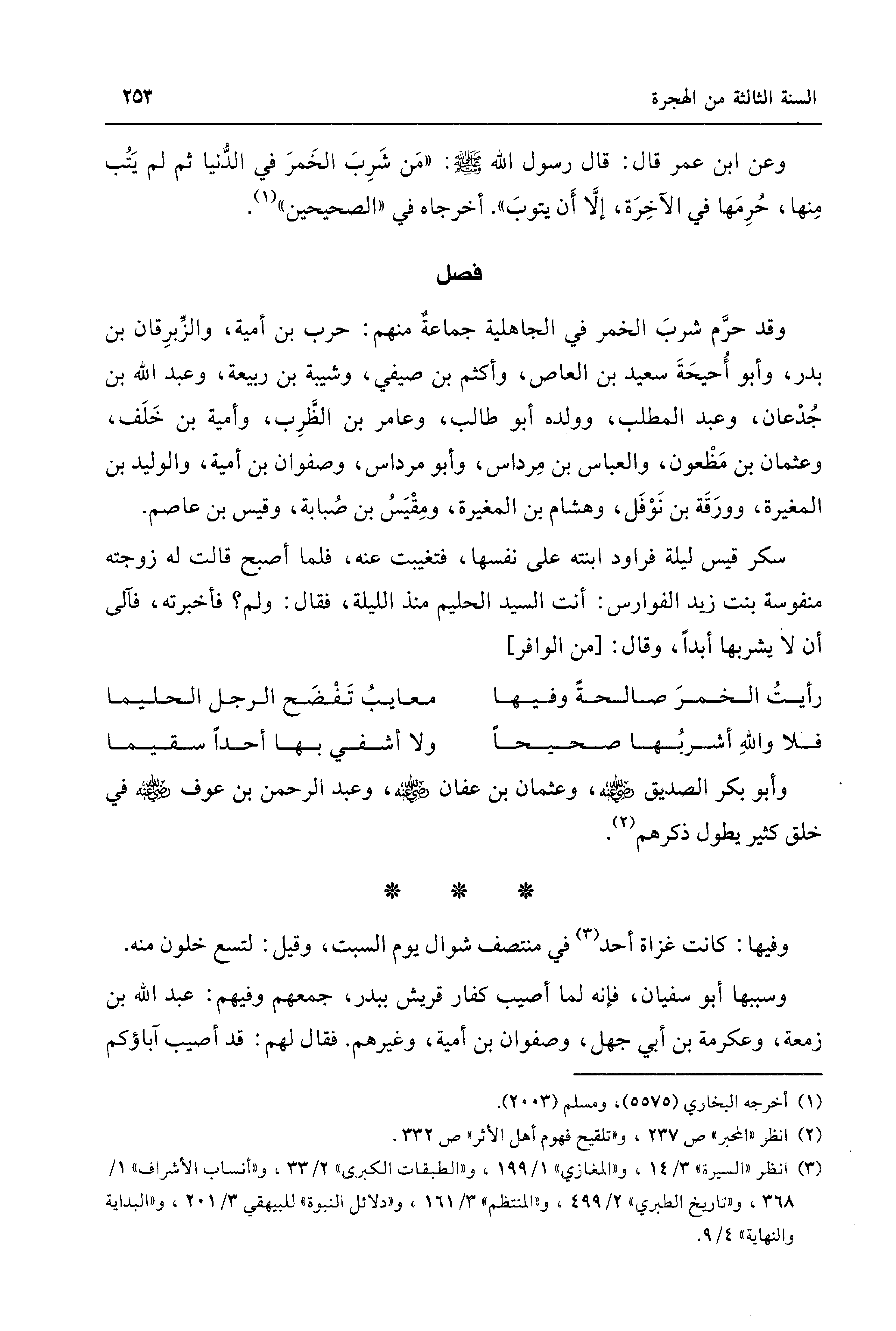 وفيها: كانت غزاة أحد (¬3) في منتصف شوال يوم السبت، وقيل: لتسع خلون منه.