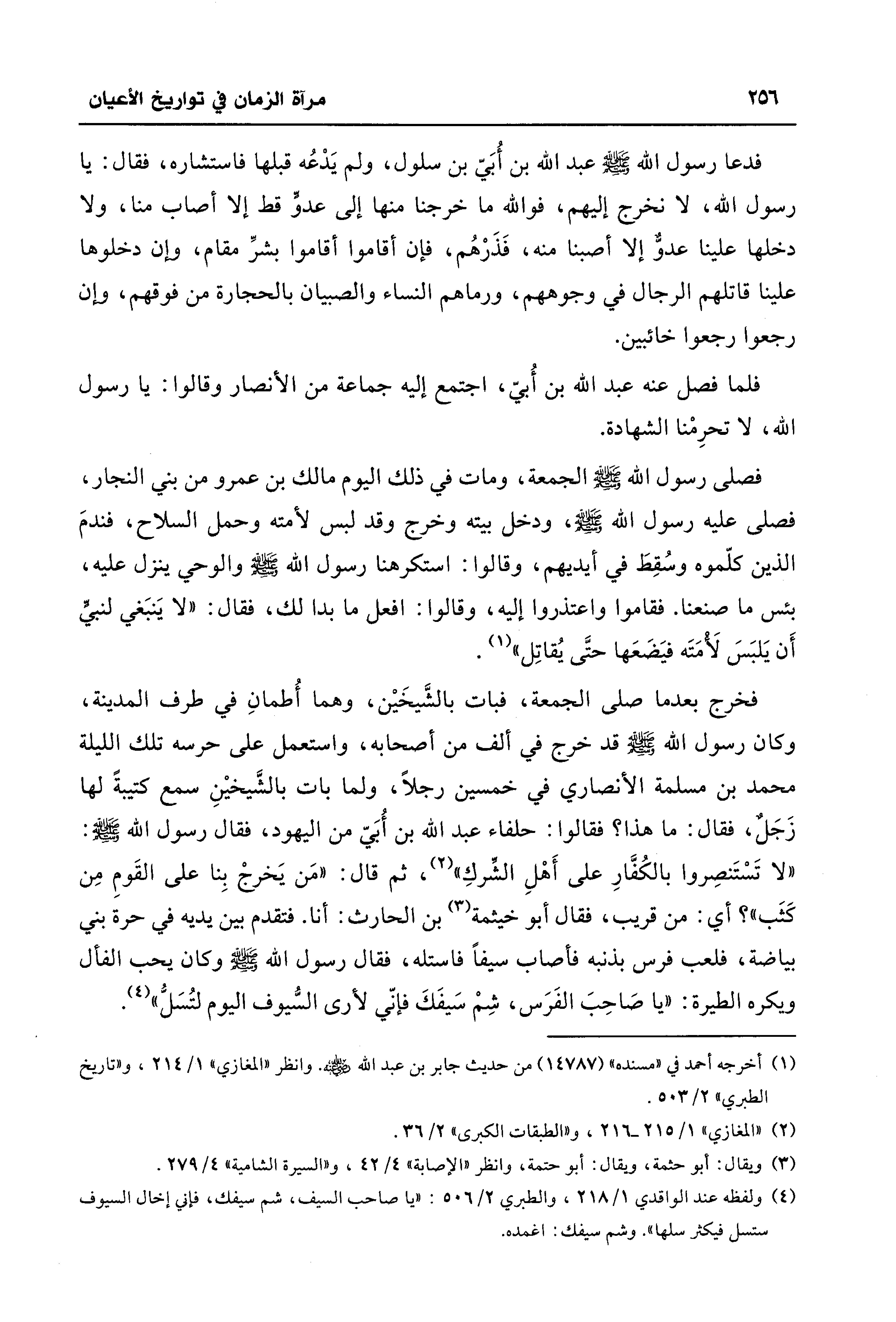 (¬4) ولفظه عند الواقدي 1/ 218، والطبري 2/ 506: "يا صاحب السيف، شم سيفك، فإني إخال السيوف ستسل فيكثر سلها". وشم سيفك: اغمده.
