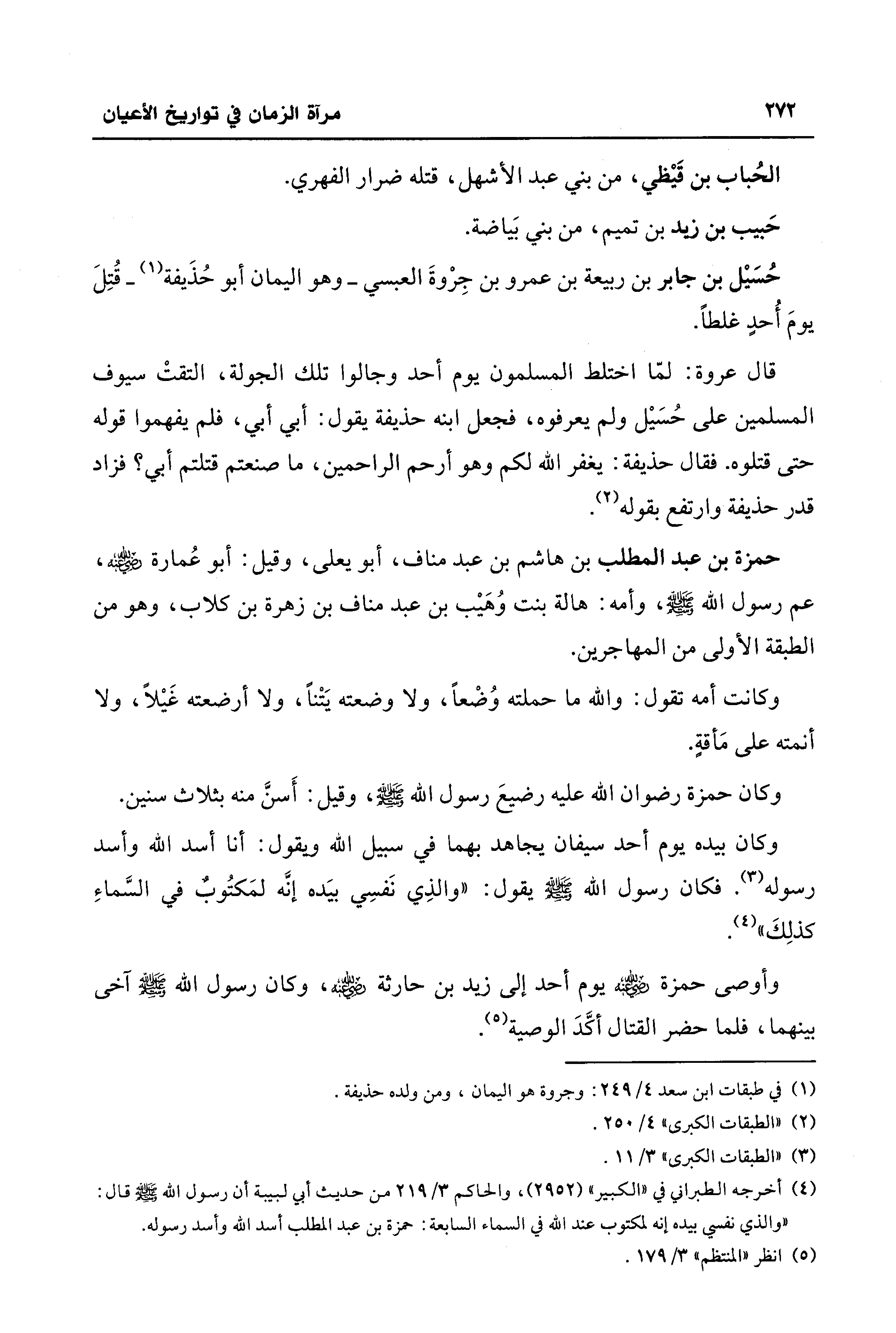(¬4) أخرجه الطبراني في "الكبير" (2952)، والحاكم 3/ 219 من حديث أبي لبيبة أن رسول الله - صلى الله عليه وسلم - قال: "والذي نفسي بيده إنه لمكتوب عند الله في السماء السابعة: حمزة بن عبد المطلب أسد الله وأسد رسوله.