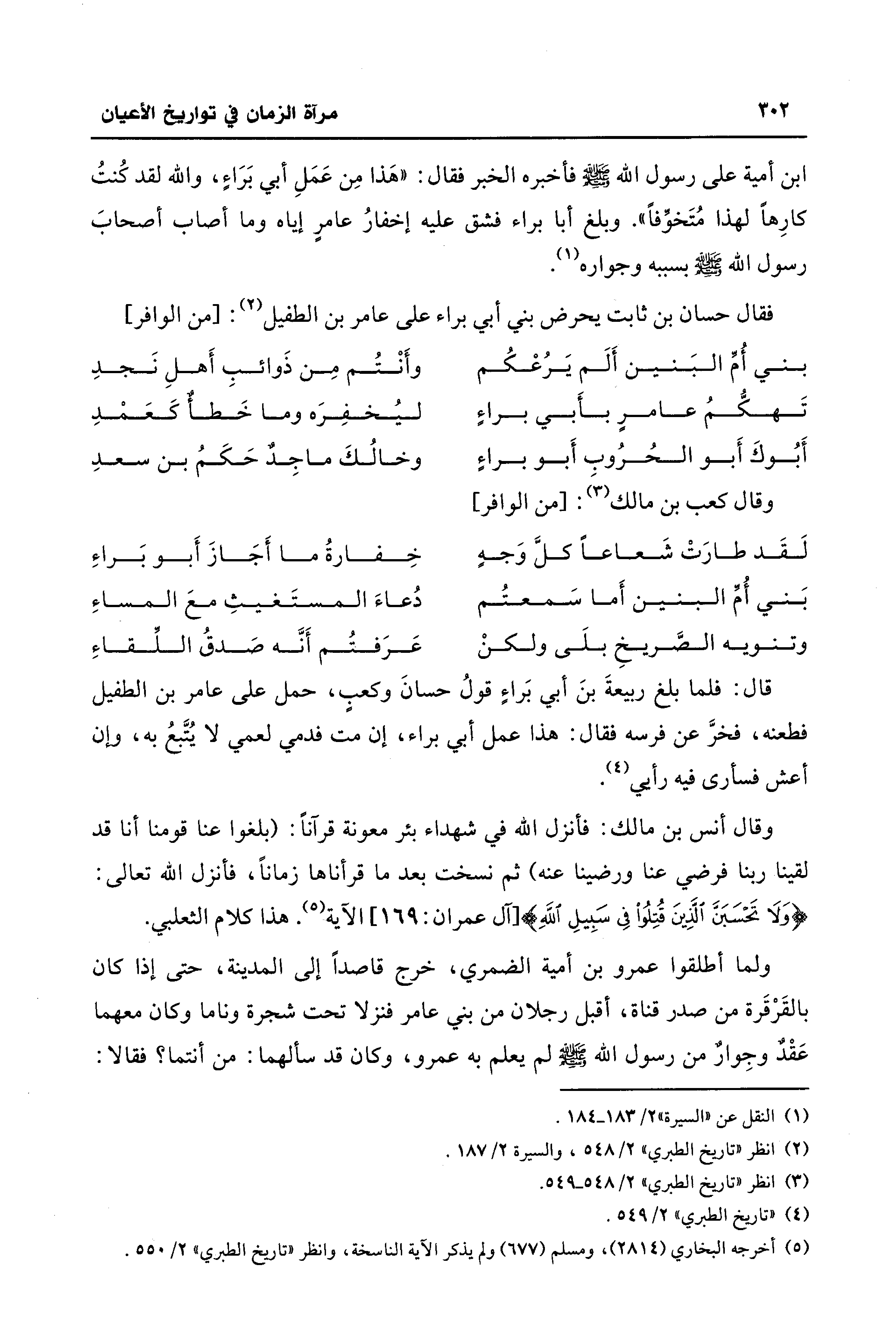 ابن أمية على رسول الله - صلى الله عليه وسلم - فأخبره الخبر فقال: "هَذا مِن عَمَلِ أبي بَرَاءٍ، والله لقد كُنتُ كارِهًا لهذا مُتَخوِّفًا". وبلغ أبا براء فشق عليه إخفارُ عامرٍ إياه وما أصاب أصحابَ رسول الله - صلى الله عليه وسلم - بسببه وجواره (¬1).