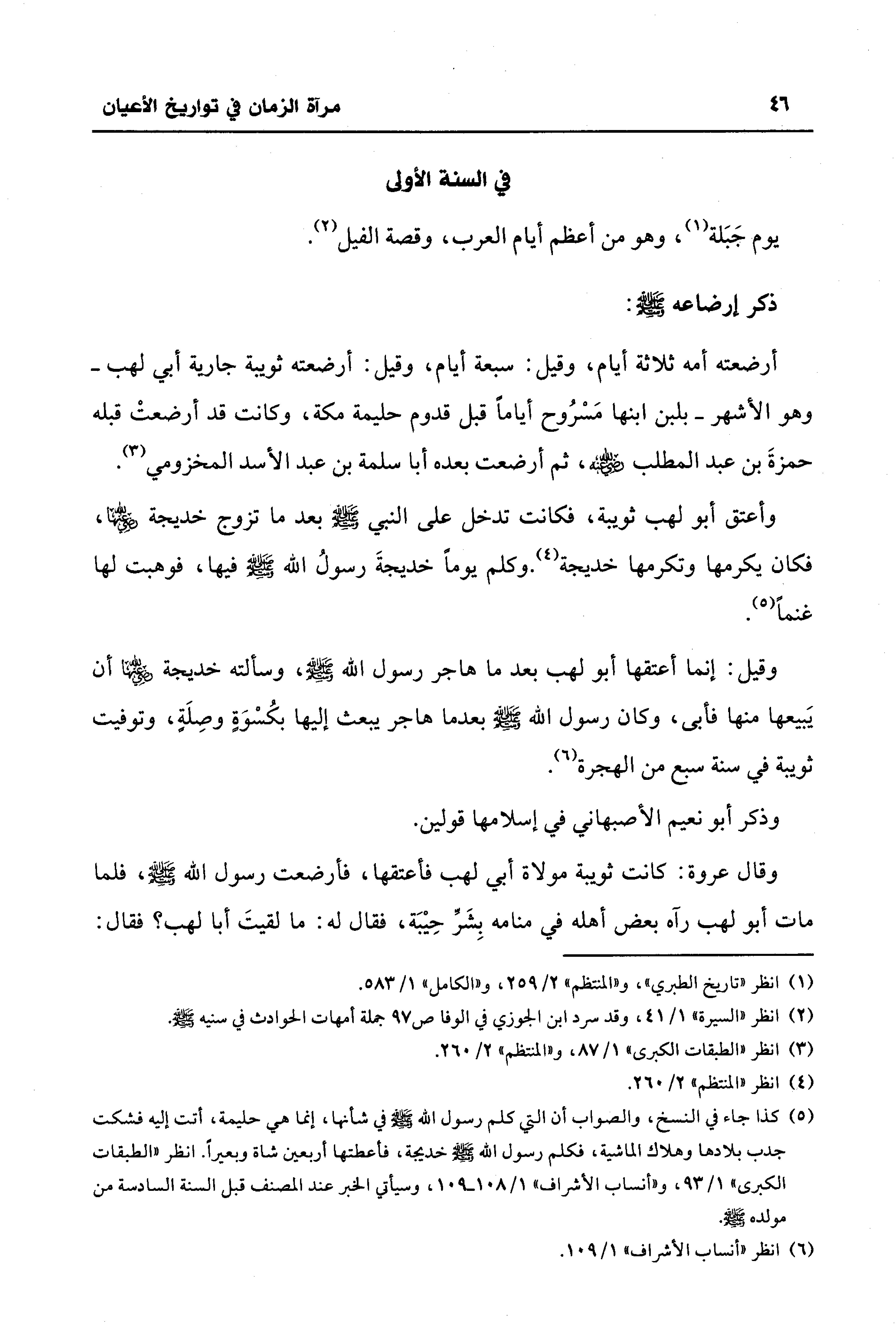 (¬2) انظر "السيرة" 1/ 41، وقد سرد ابن الجوزي في الوفا ص 97 جملة أمهات الحوادث في سنيه - صلى الله عليه وسلم -.