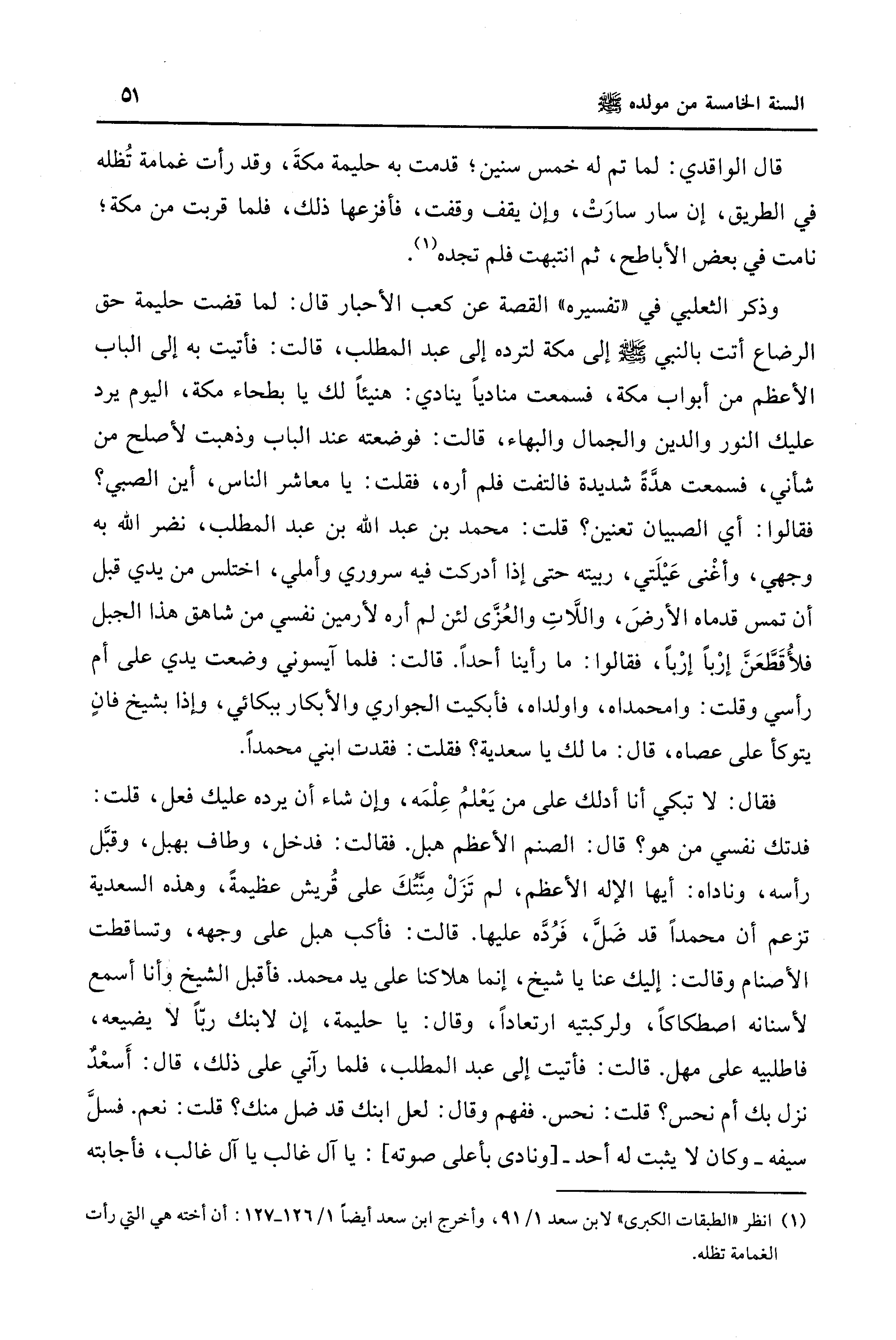 (¬1) انظر "الطبقات الكبرى" لابن سعد 1/ 91، وأخرج ابن سعد أيضًا 1/ 126 - 127: أن أخته هي التي رأت الغمامة تظله.