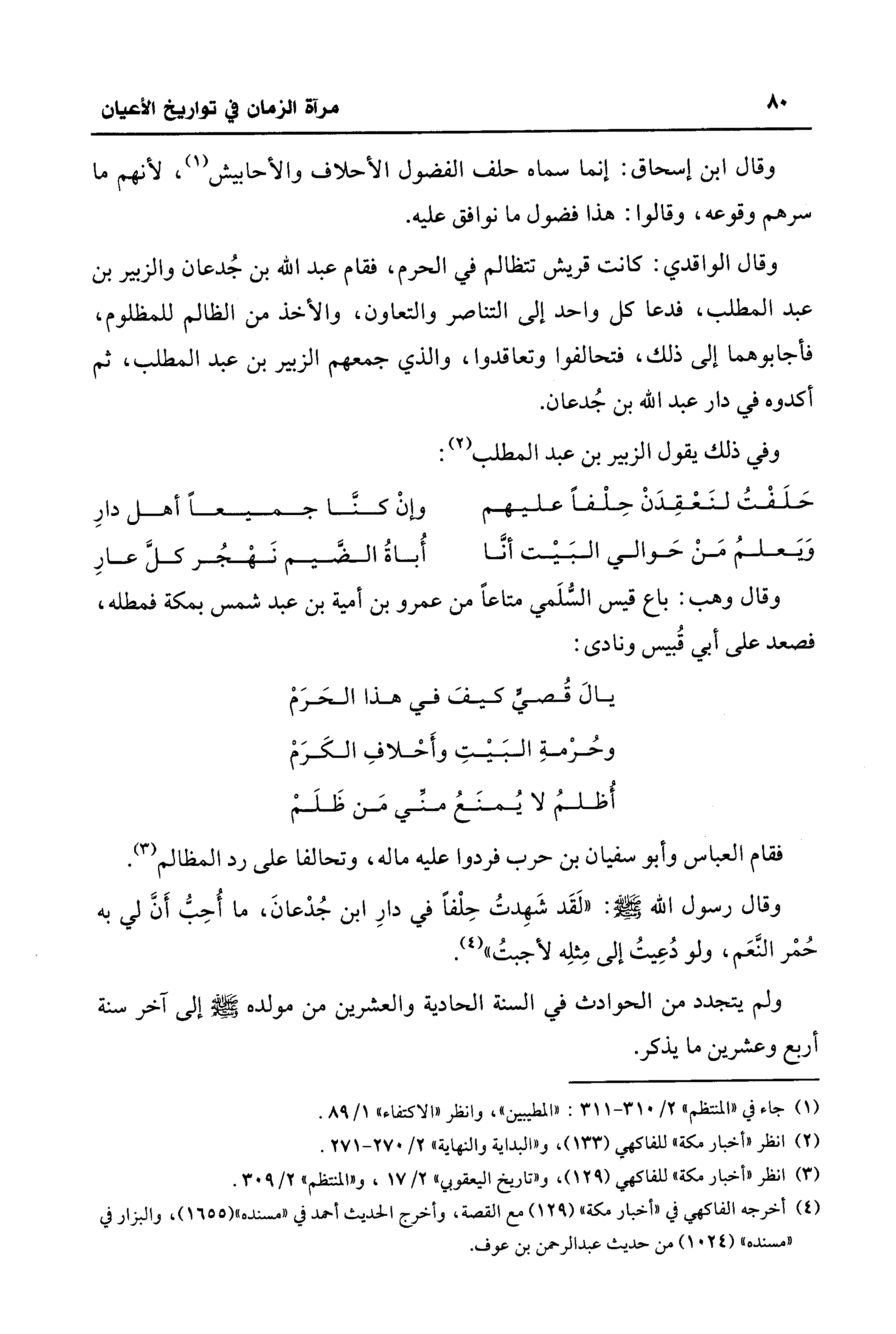 وقال الواقدي: كانت قريش تتظالم في الحرم، فقام عبد الله بن جُدعان والزبير بن عبد المطلب، فدعا كل واحد إلى التناصر والتعاون، والأخذ من الظالم للمظلوم، فأجابوهما إلى ذلك، فتحالفوا وتعاقدوا، والذي جمعهم الزبير بن عبد المطلب، ثم أكدوه في دار عبد الله بن جُدعان.