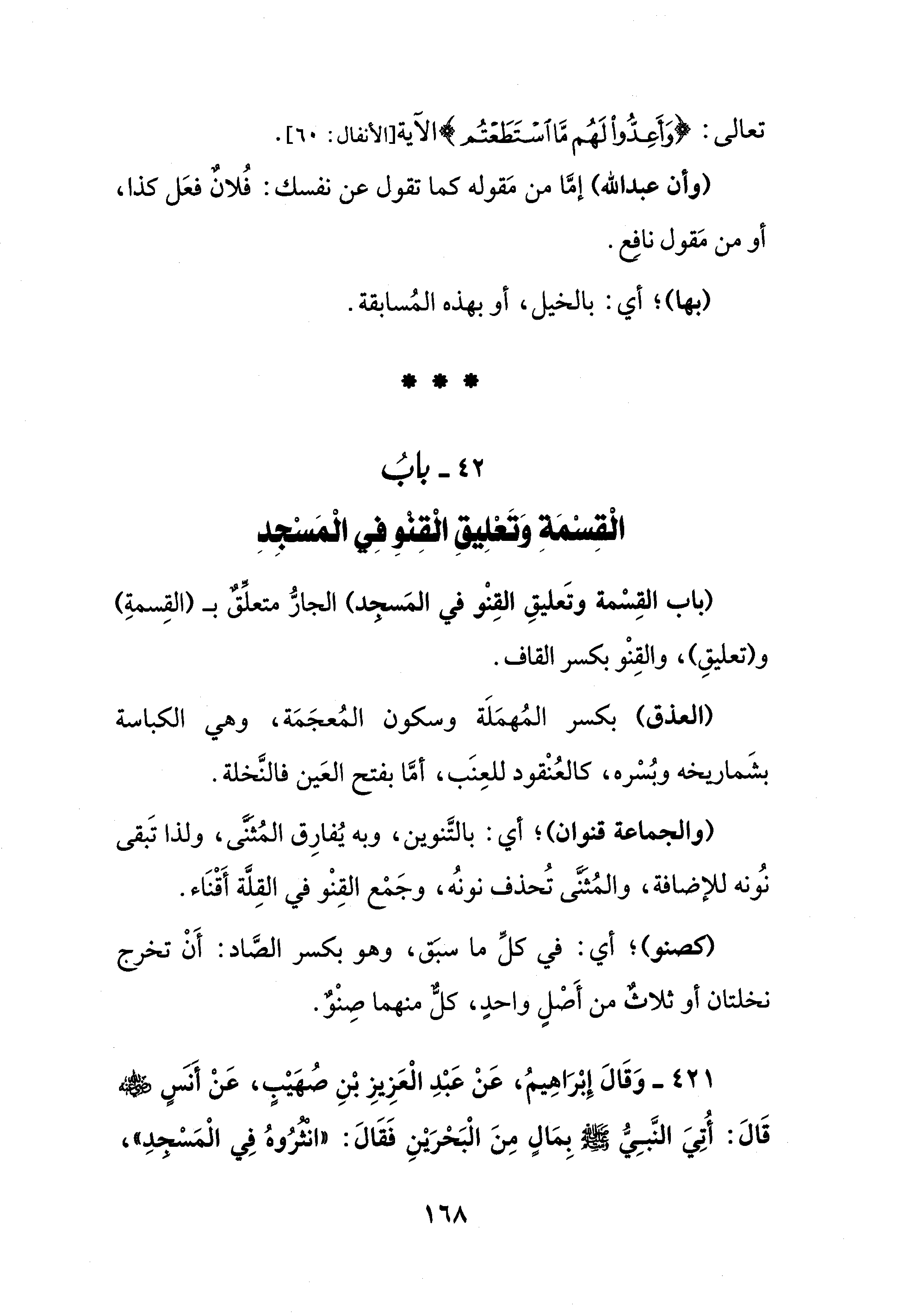 42 - بابُ الْقِسْمَةِ وَتَعْلِيقِ الْقِنْوِ في الْمَسْجِدِ