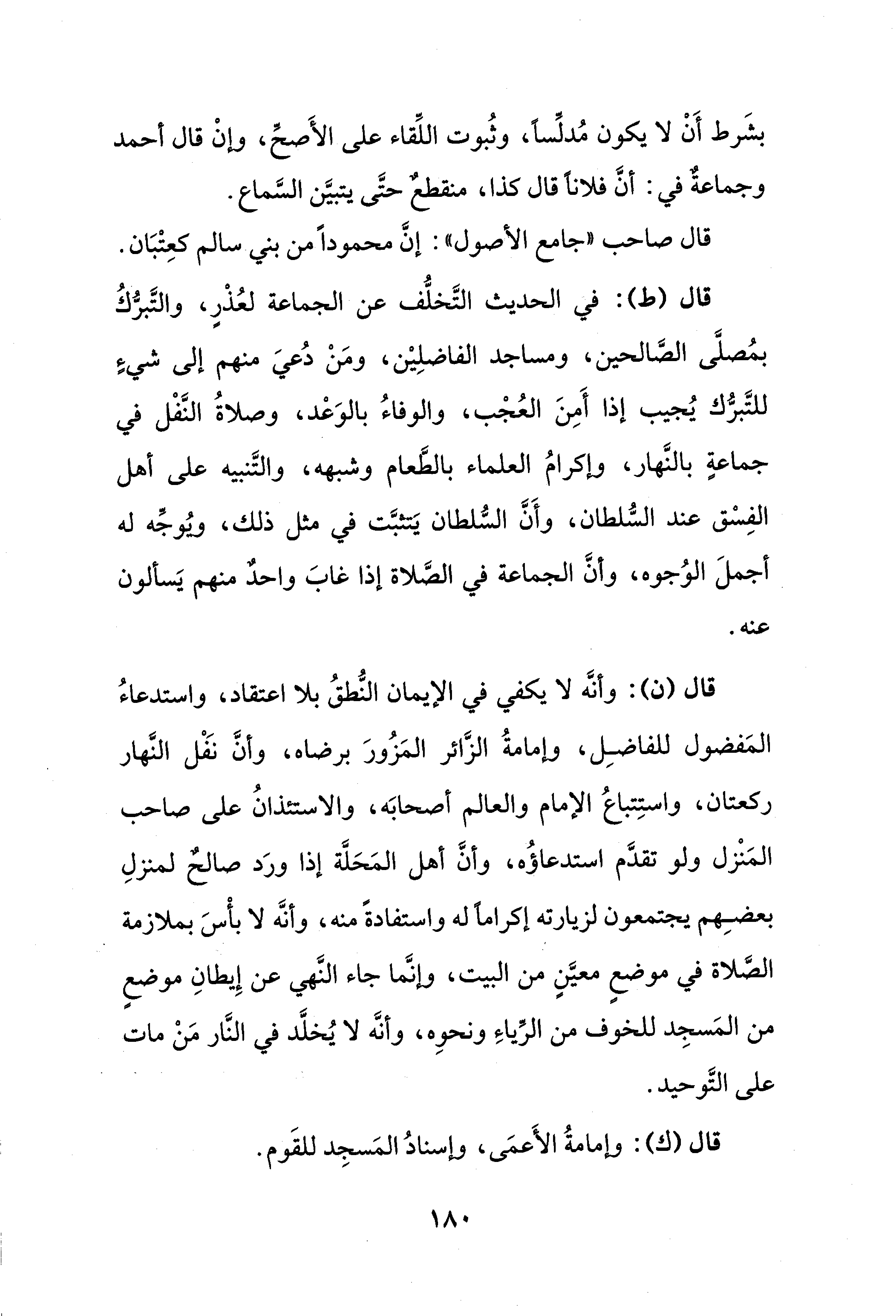 قال (ك): وإمامةُ الأَعمَى، وإسنادُ المَسجِد للقَوم.