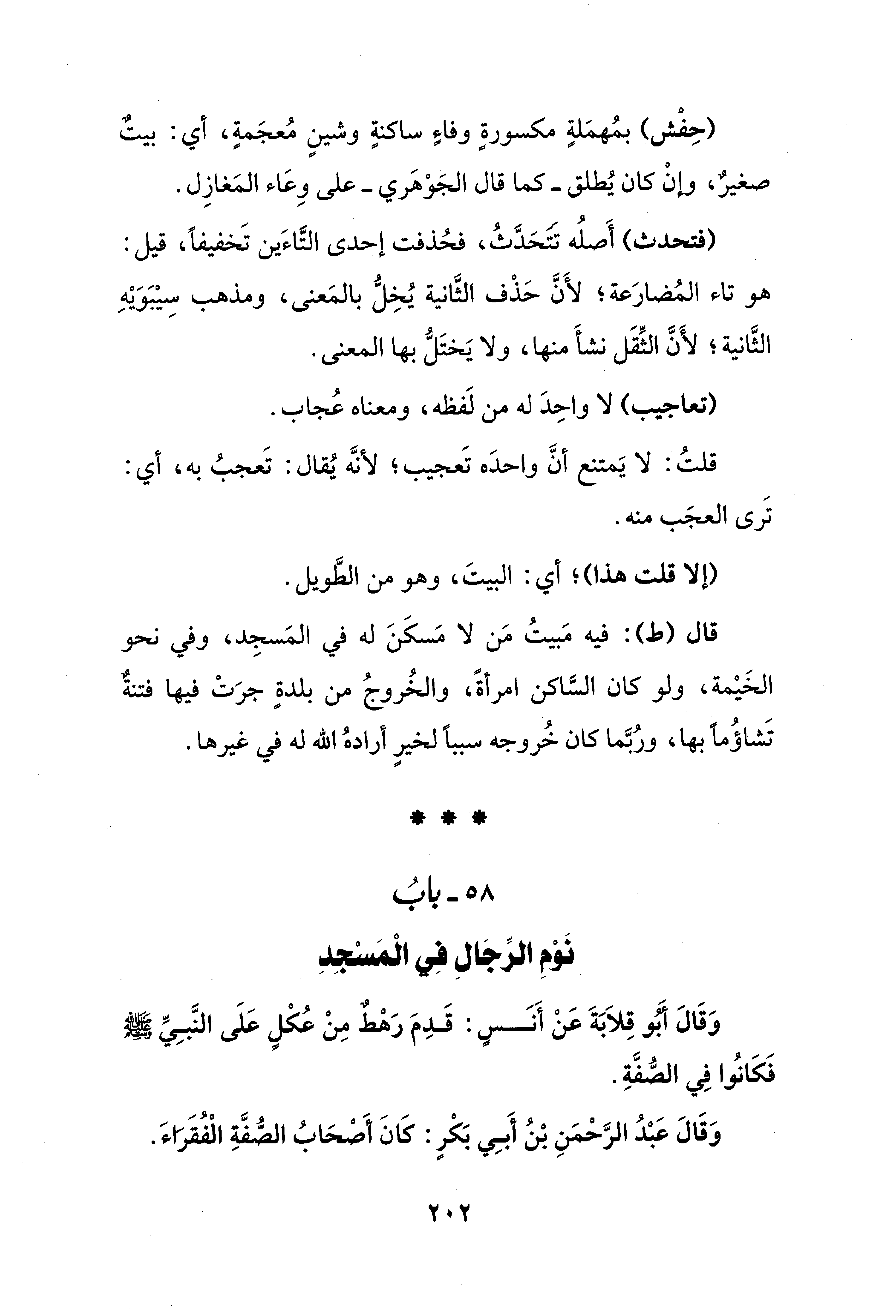 58 - بابُ نَوْمِ الرِّجَالِ في الْمَسْجِدِ
