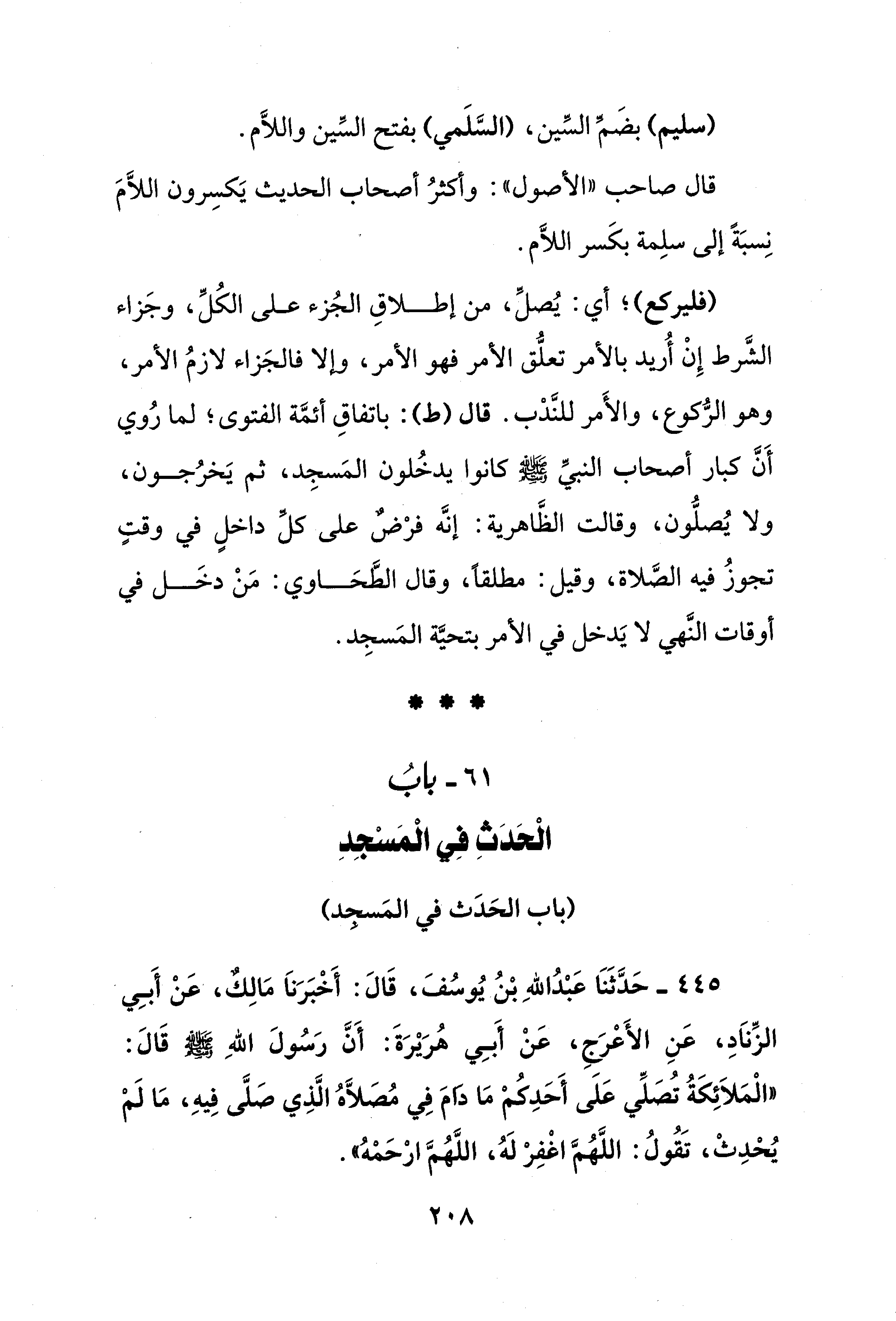 61 - بابُ الْحَدَثِ في الْمَسْجِدِ