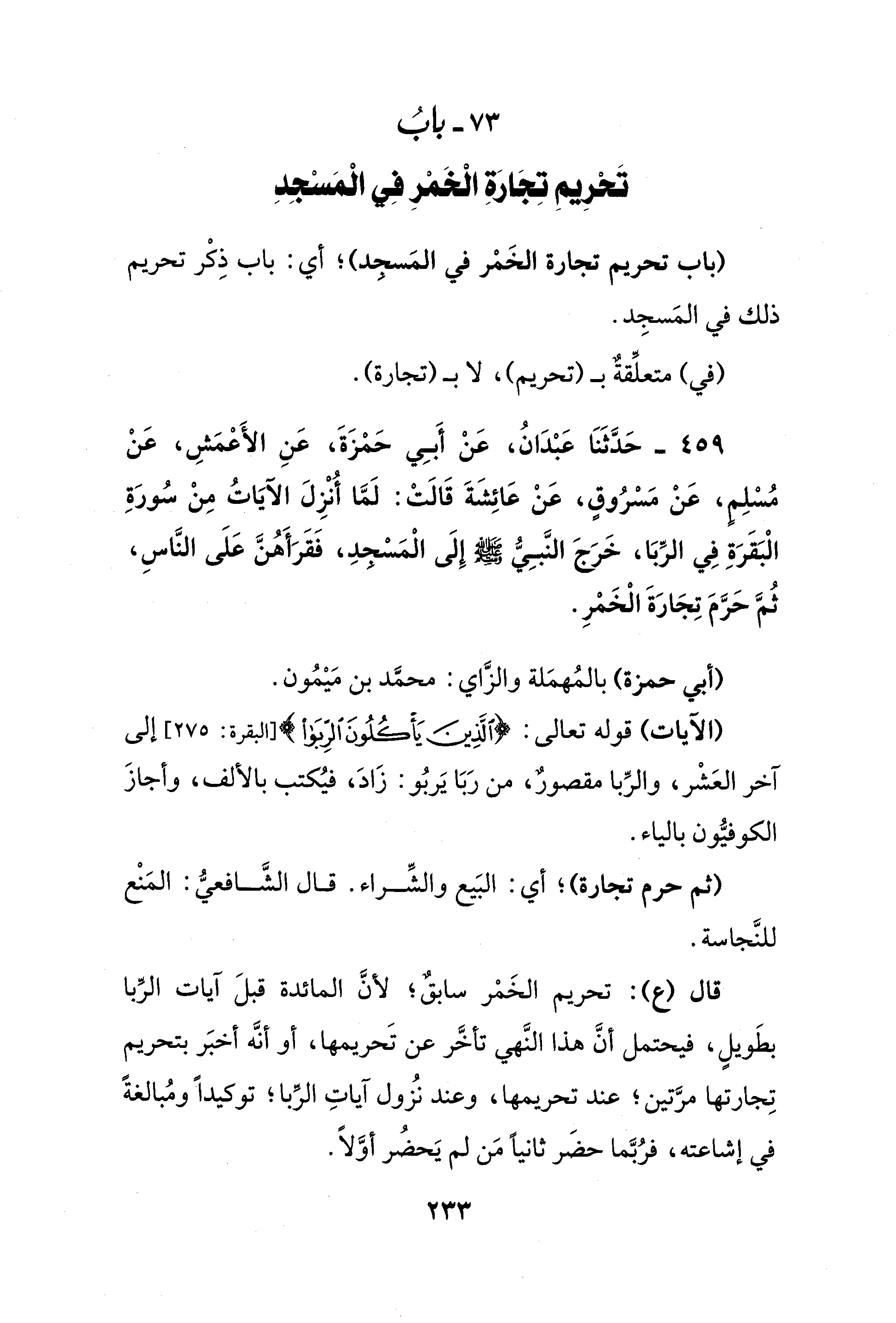 73 - بابُ تَحْرِيمِ تِجَارة الْخمْرِ في الْمَسْجِدِ