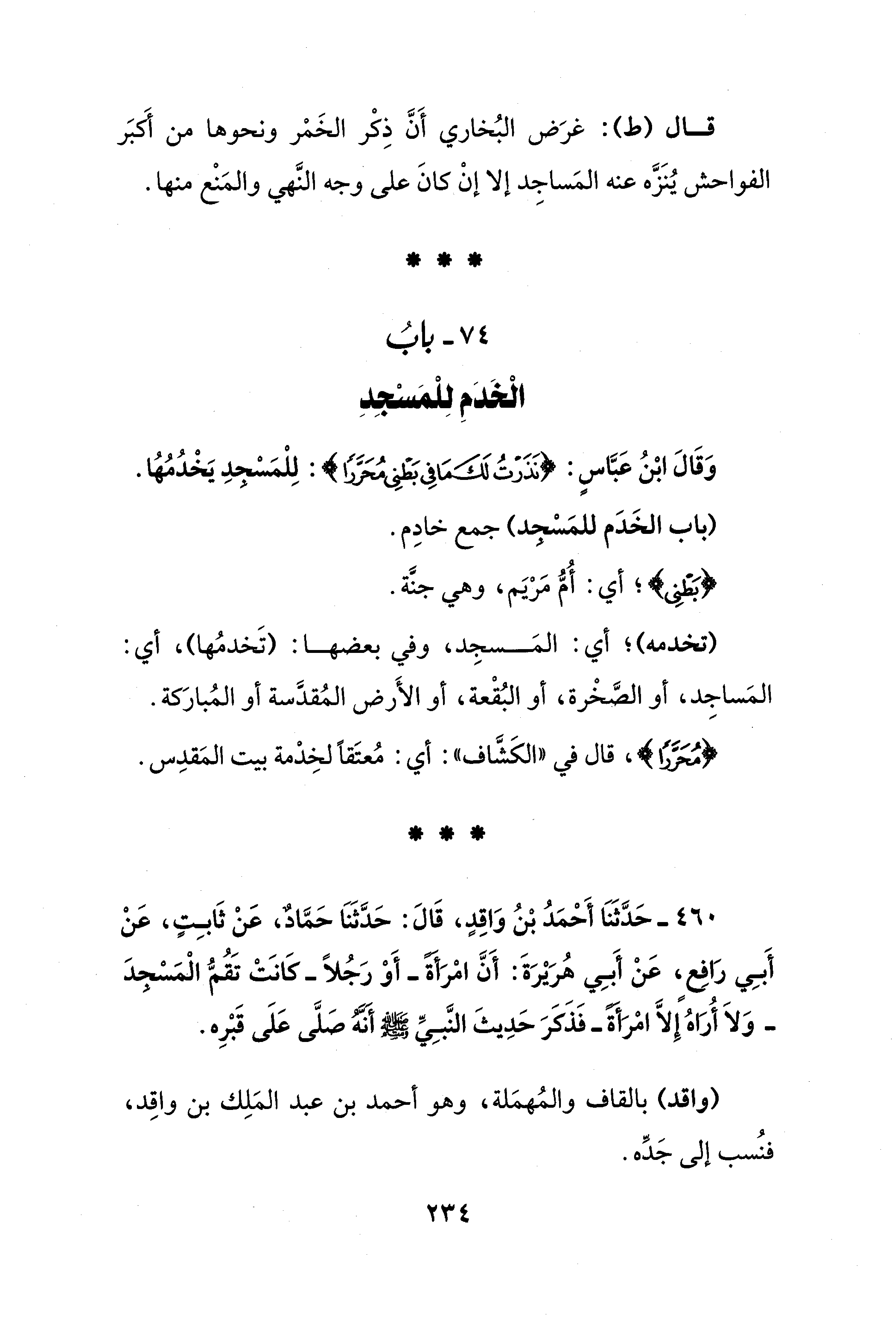 74 - بابُ الْخَدَمِ لِلْمَسْجِدِ