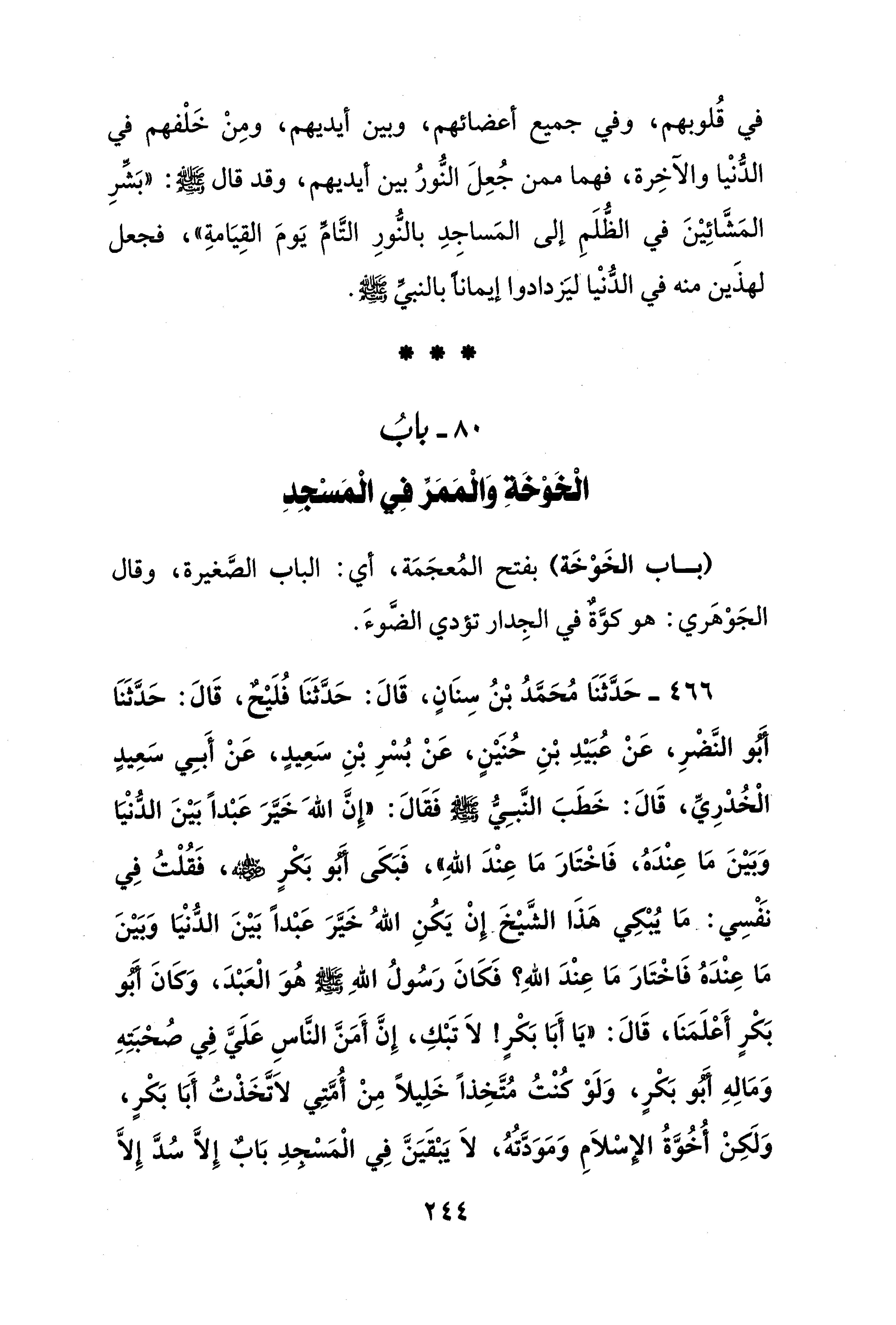 80 - بابُ الْخَوْخَةِ وَالْمَمَرِّ في الْمَسْجِدِ