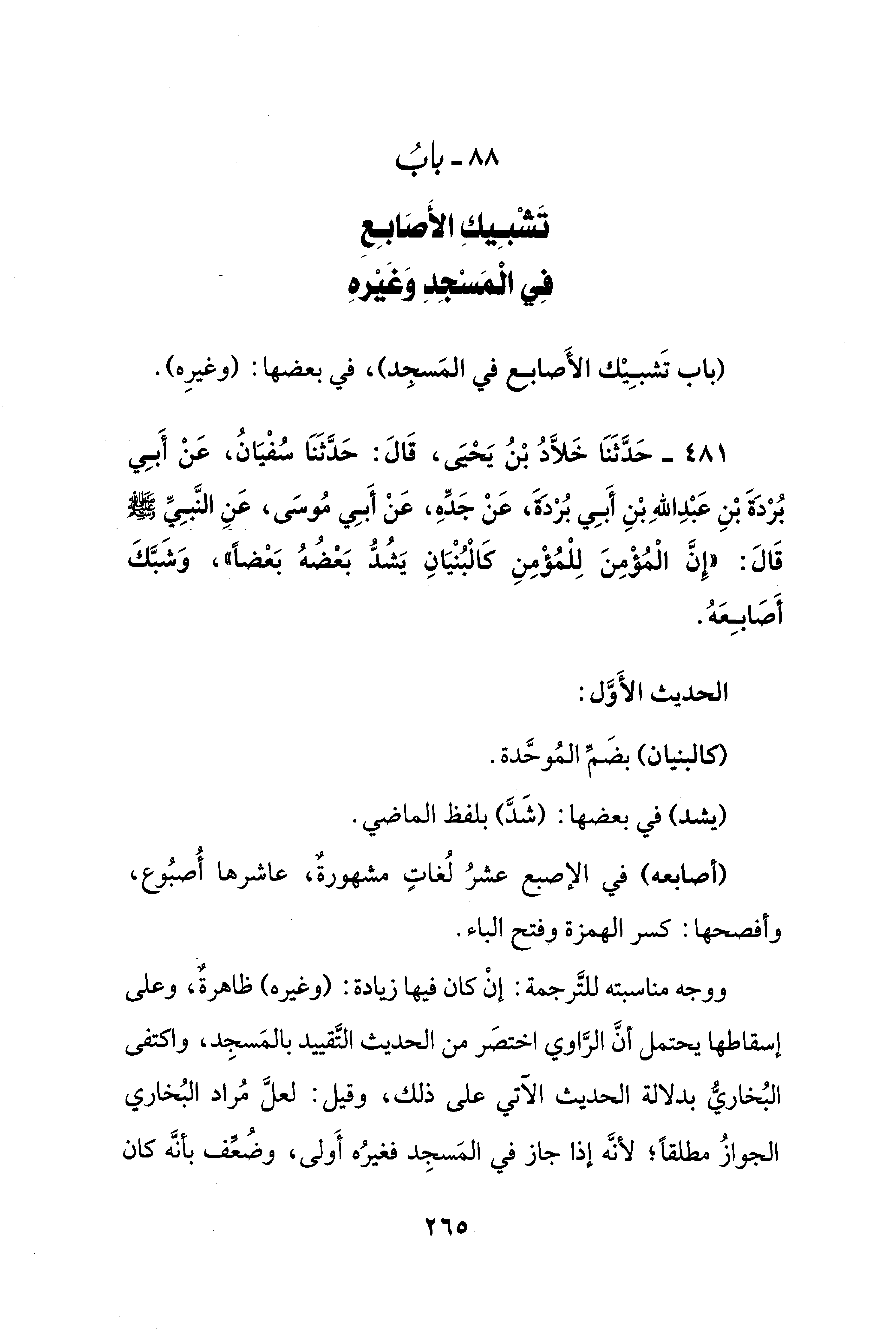 88 - بابُ تَشْبِيكِ الأَصَابِعِ في الْمَسْجِدِ وَغَيْره
