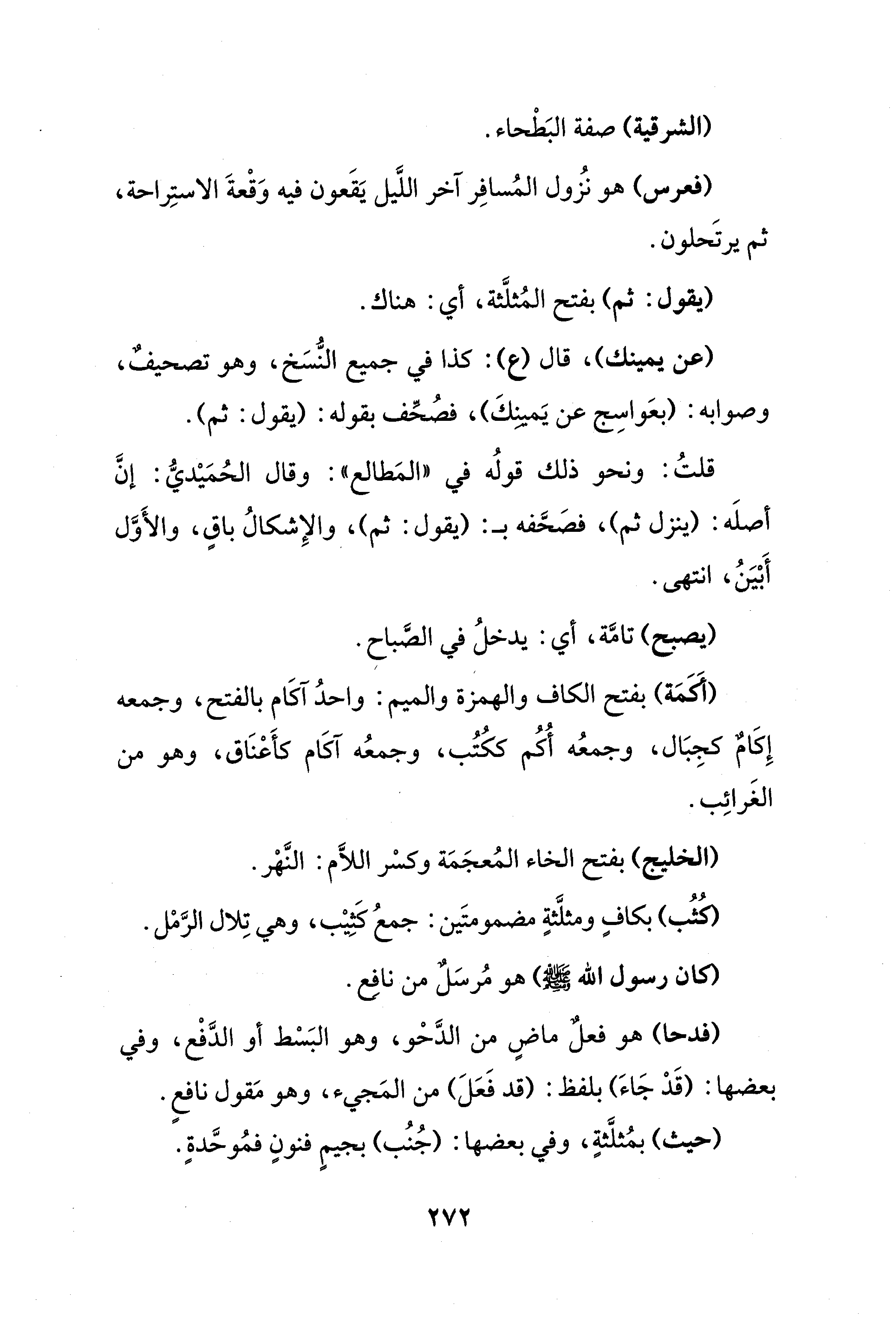 (عن يمينك)، قال (ع): كذا في جميع النُّسَخ، وهو تصحيفٌ، وصوابه: (بعَواسِج عن يَمينكَ)، فصُحِّف بقوله: (يقول: ثم).