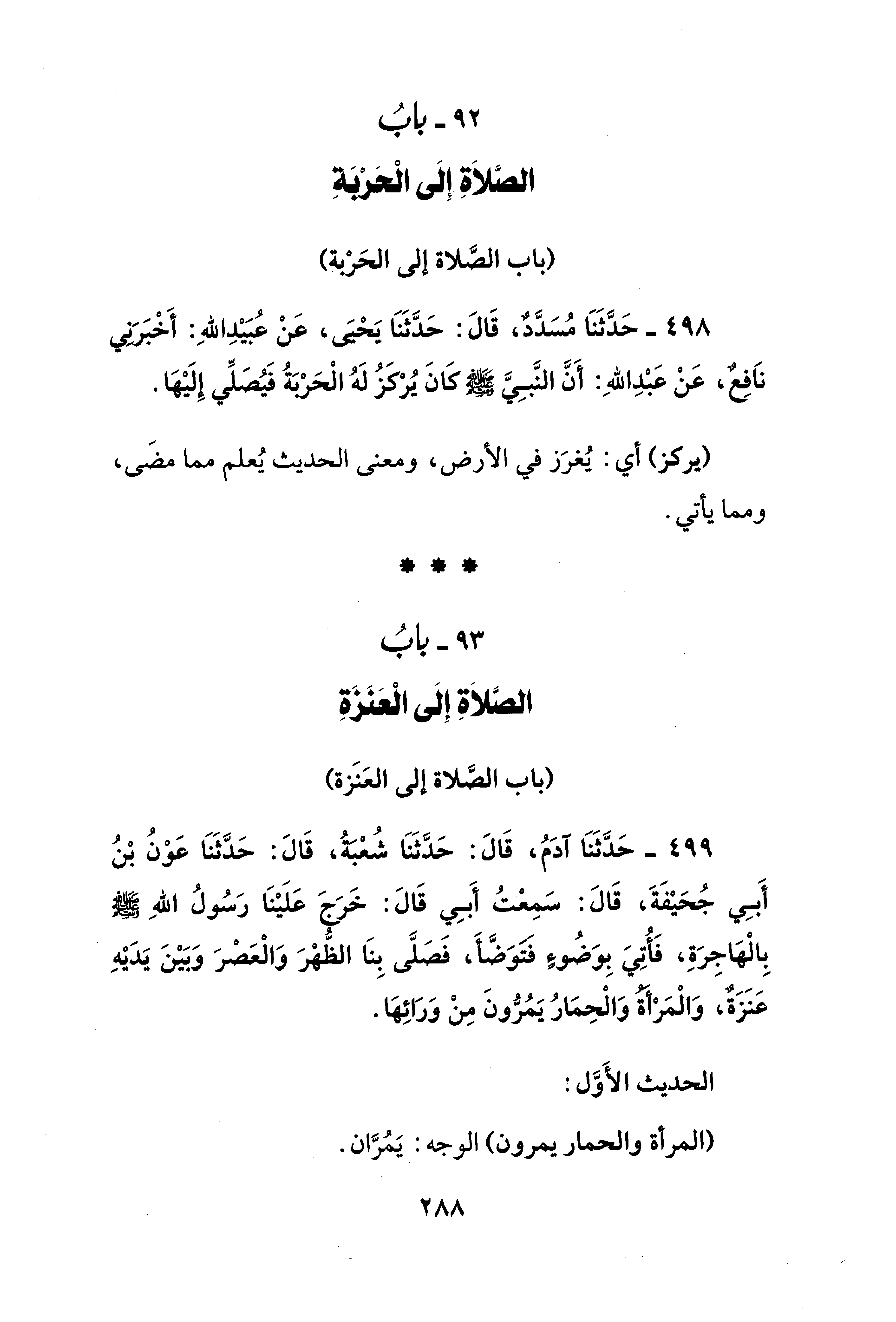 92 - بابُ الصَّلاَةِ إِلَى الْحَرْبَةِ