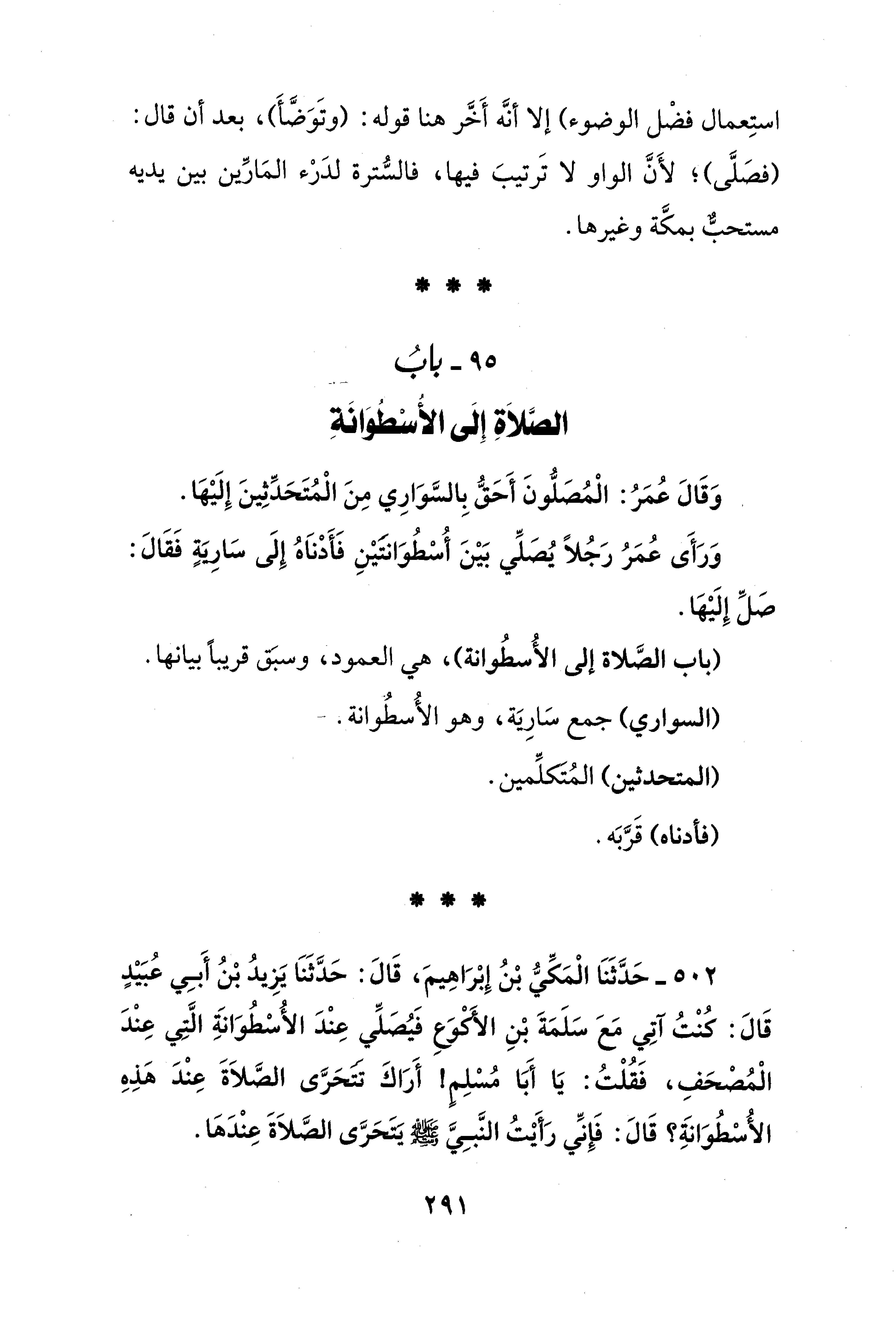 95 - بابُ الصَّلاَةِ إلَى الأُسْطوَانَةِ