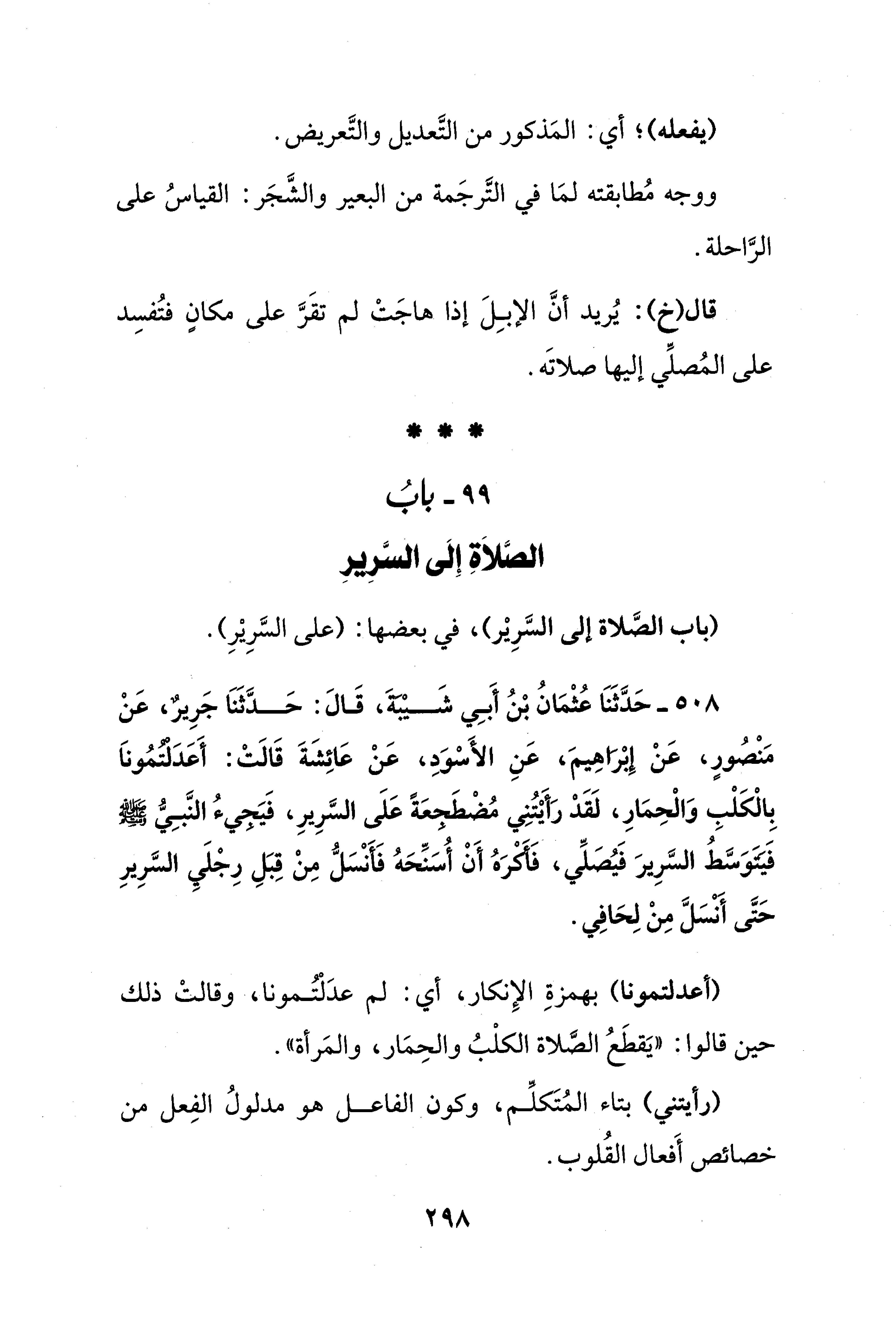 99 - بابُ الصَّلاَةِ إِلَى السَّرِيرِ