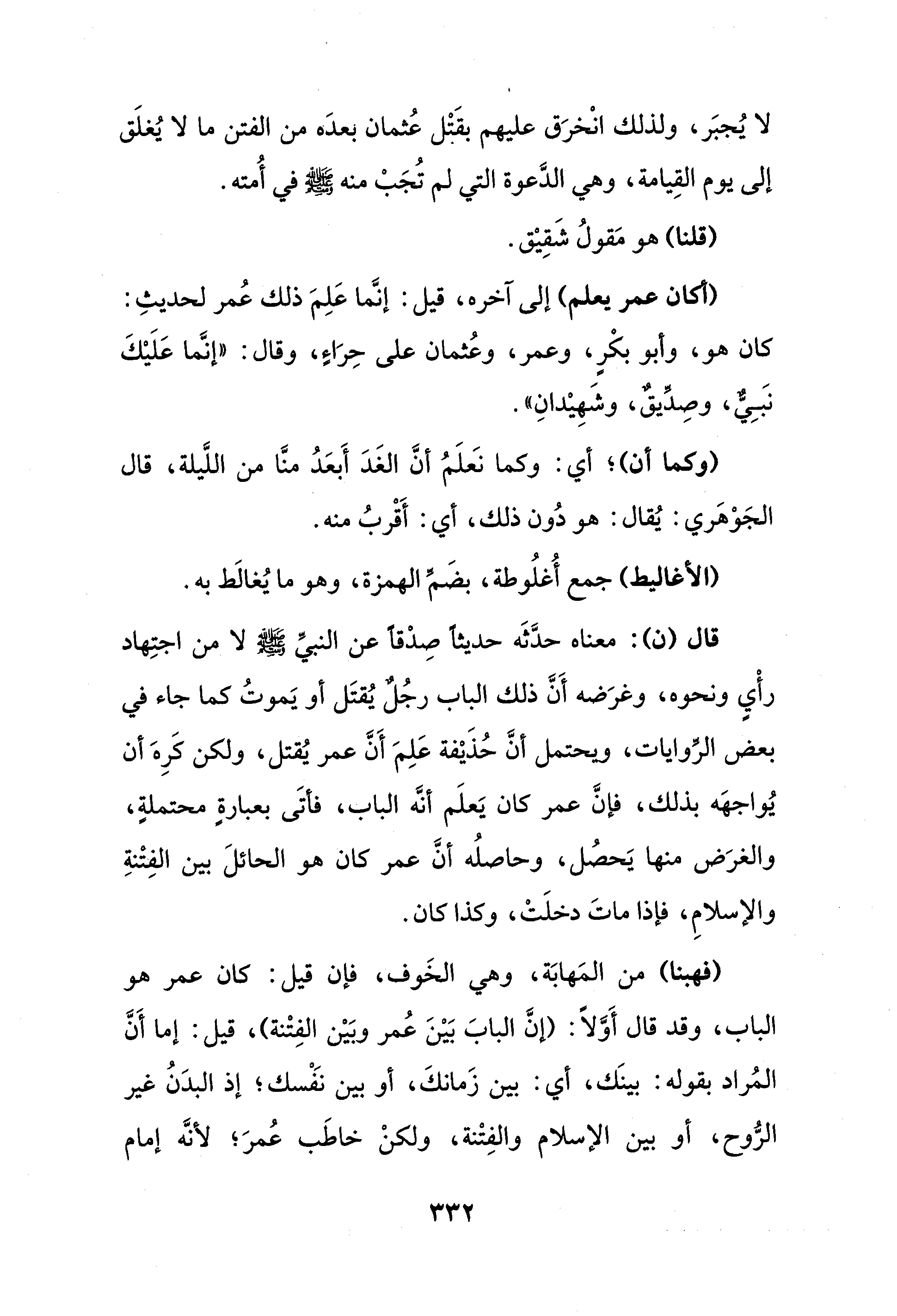 لا يُجبَر، ولذلك انْخرَق عليهم بقَتْل عُثمان بعدَه من الفتن ما لا يُغلَق إلى يوم القِيامة، وهي الدَّعوة التي لم تُجَبْ منه - صلى الله عليه وسلم - في أُمته.