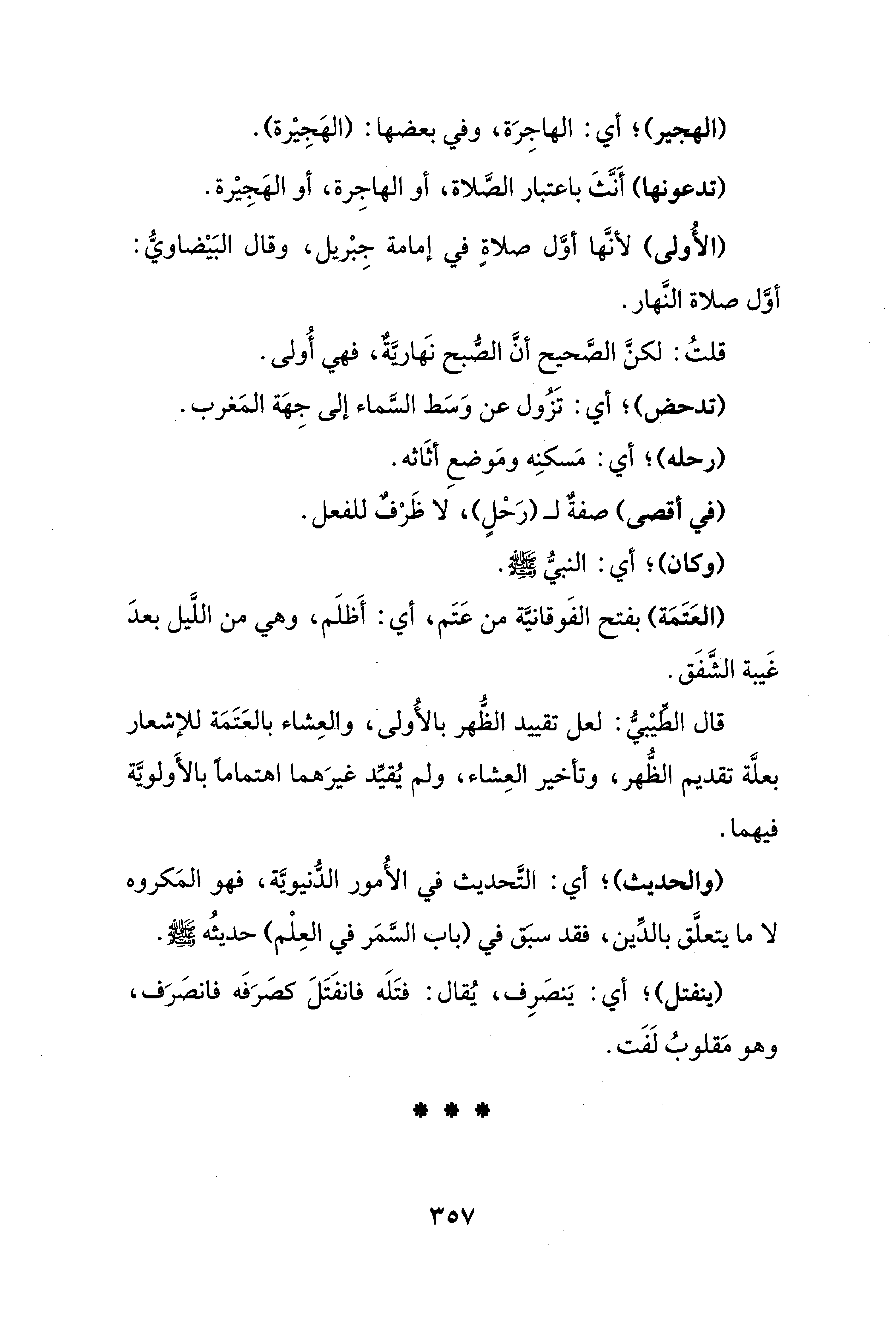 قال الطِّيْبيُّ: لعل تقييد الظُّهر بالأُولى، والعِشاء بالعَتَمَة للإشعار بعلَّة تقديم الظُّهر، وتأخير العِشاء، ولم يُقيِّد غيرَهما اهتمامًا بالأَولويَّة فيهما.