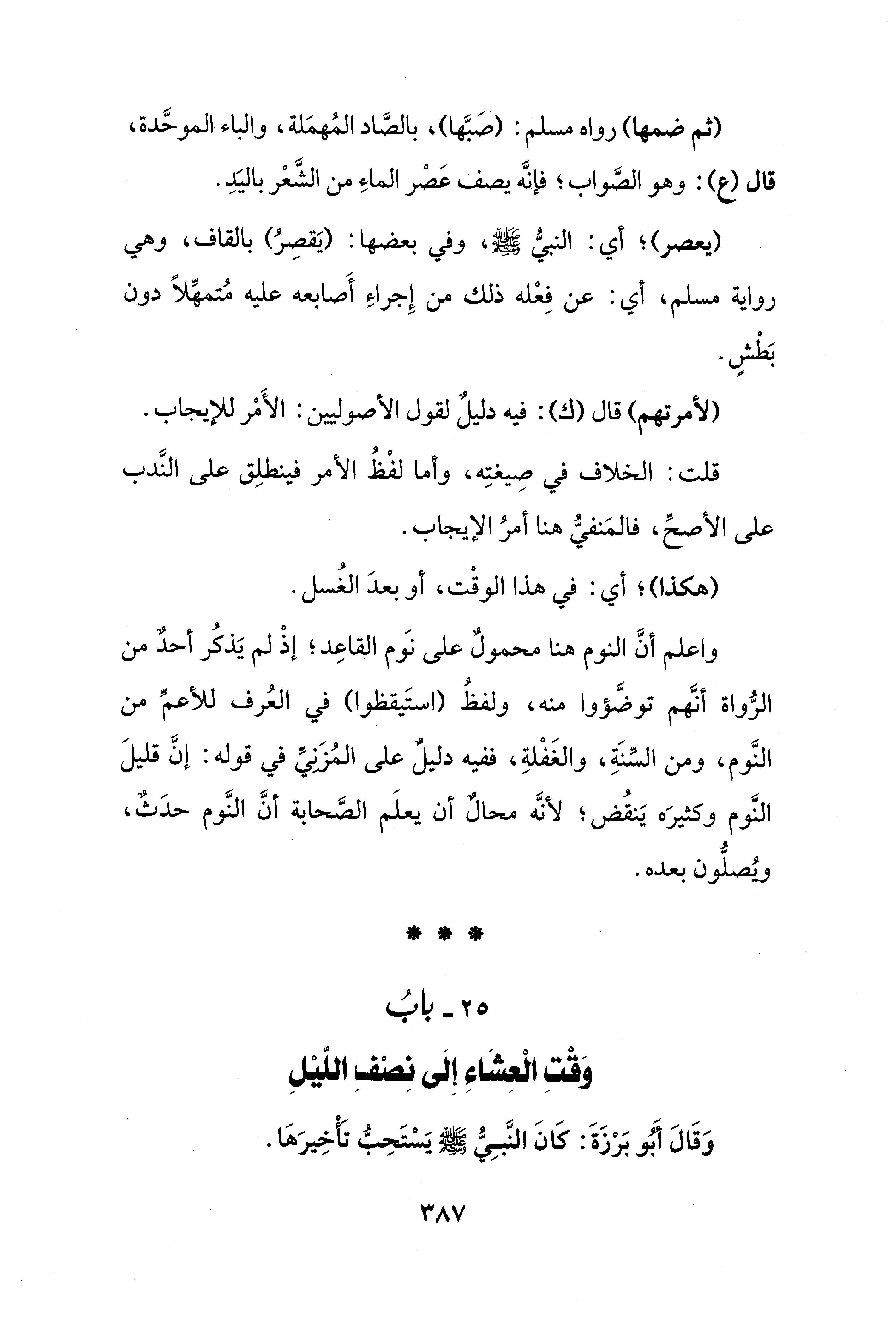 25 - بابُ وَقْتِ الْعِشَاءِ إِلَى نِصْفِ اللَّيْلِ