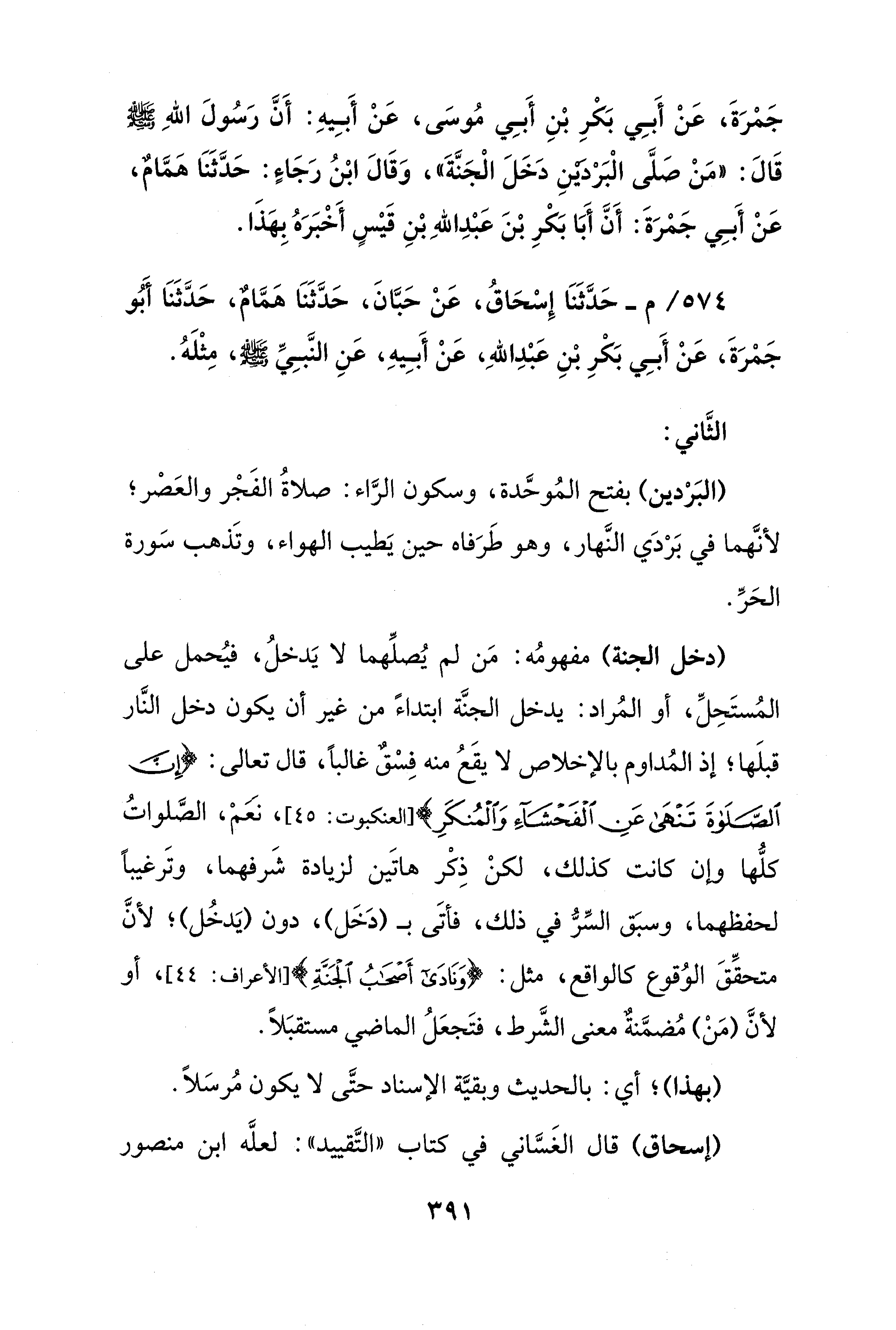 574 / -م - حَدَّثَنَا إِسْحَاقُ، عَنْ حَبَّانَ، حَدَّثَنَا هَمَّامٌ، حَدَّثَنَا أَبُو جَمْرَةَ، عَنْ أَبِي بَكْرِ بْنِ عَبْدِ اللهِ، عَنْ أَبِيهِ، عَنِ النَّبِيِّ - صلى الله عليه وسلم -، مِثْلَهُ.