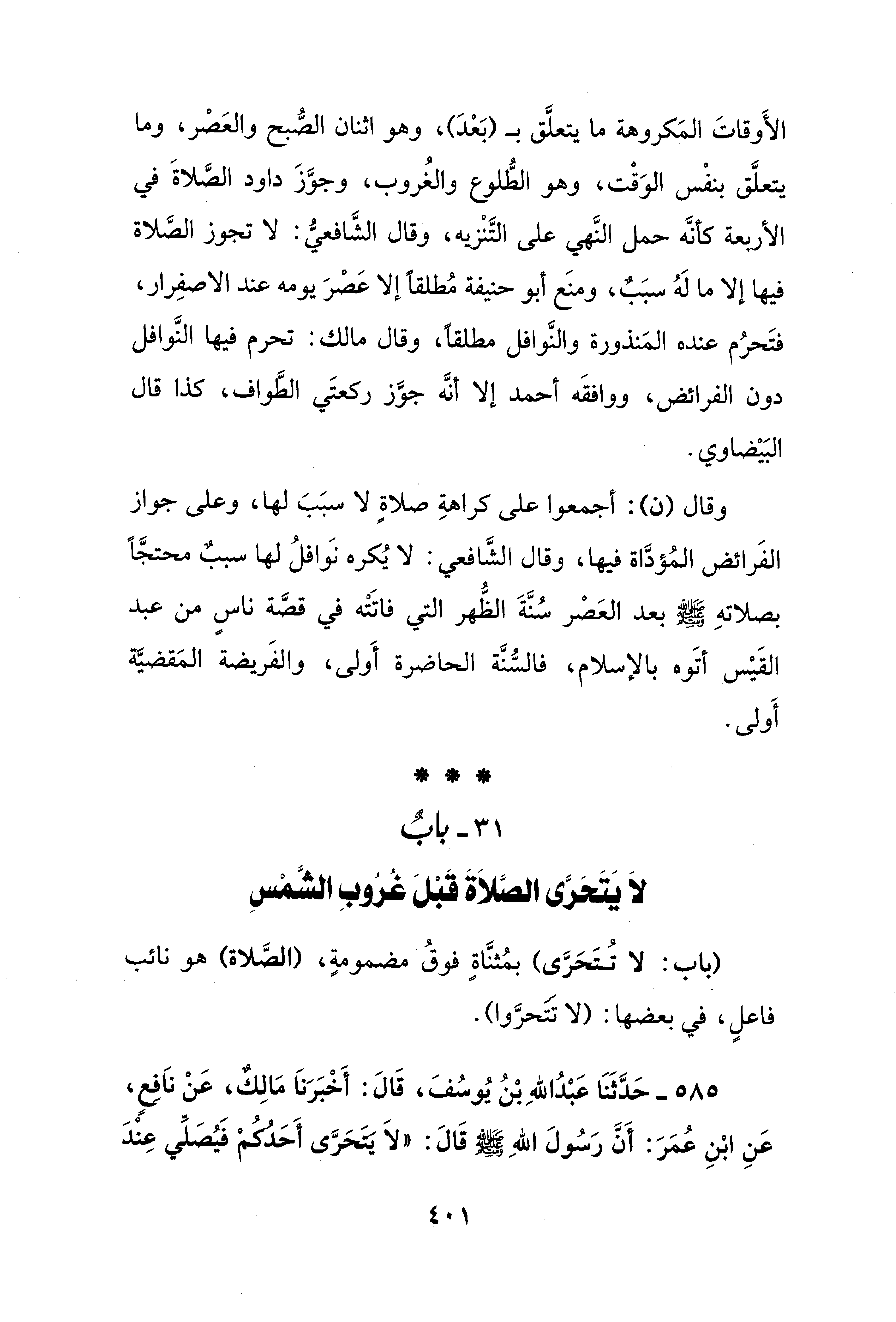 31 - باب لاَ يتحرى الصلاَةَ قَبْلَ غرُوبِ الشَّمْسِ