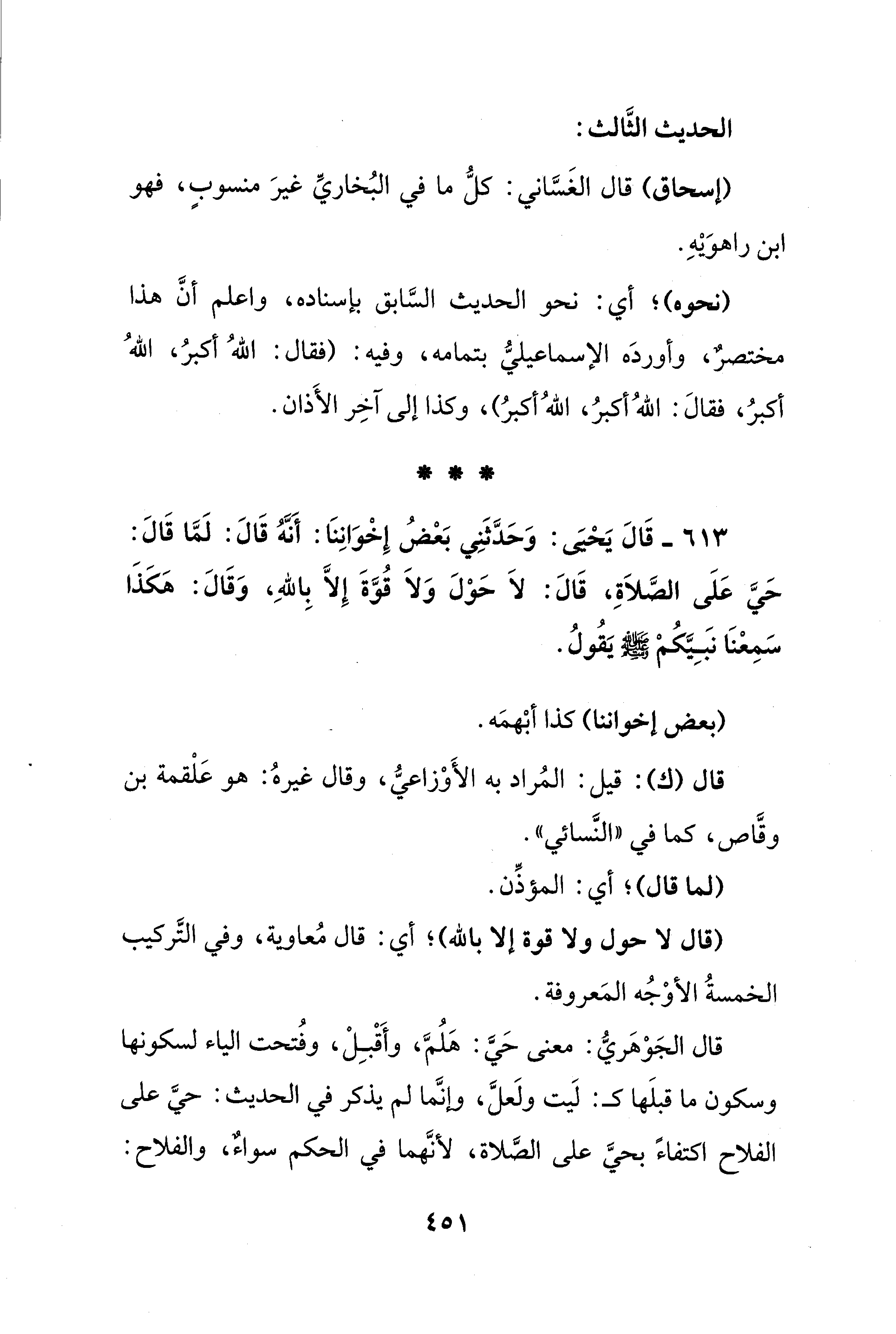 613 - قَالَ يَحْيَى: وَحَدَّثَنِي بَعْضُ إِخْوَانِنَا: أَنَّهُ قَالَ: لَمَّا قَالَ: حَيَّ عَلَى الصَّلاَةِ، قَالَ: لاَ حَوْلَ وَلاَ قُوَّةَ إلا بِاللهِ، وَقَالَ: هَكَذَا سَمِعْنَا نبَيَّكُمْ - صلى الله عليه وسلم - يَقُولُ.