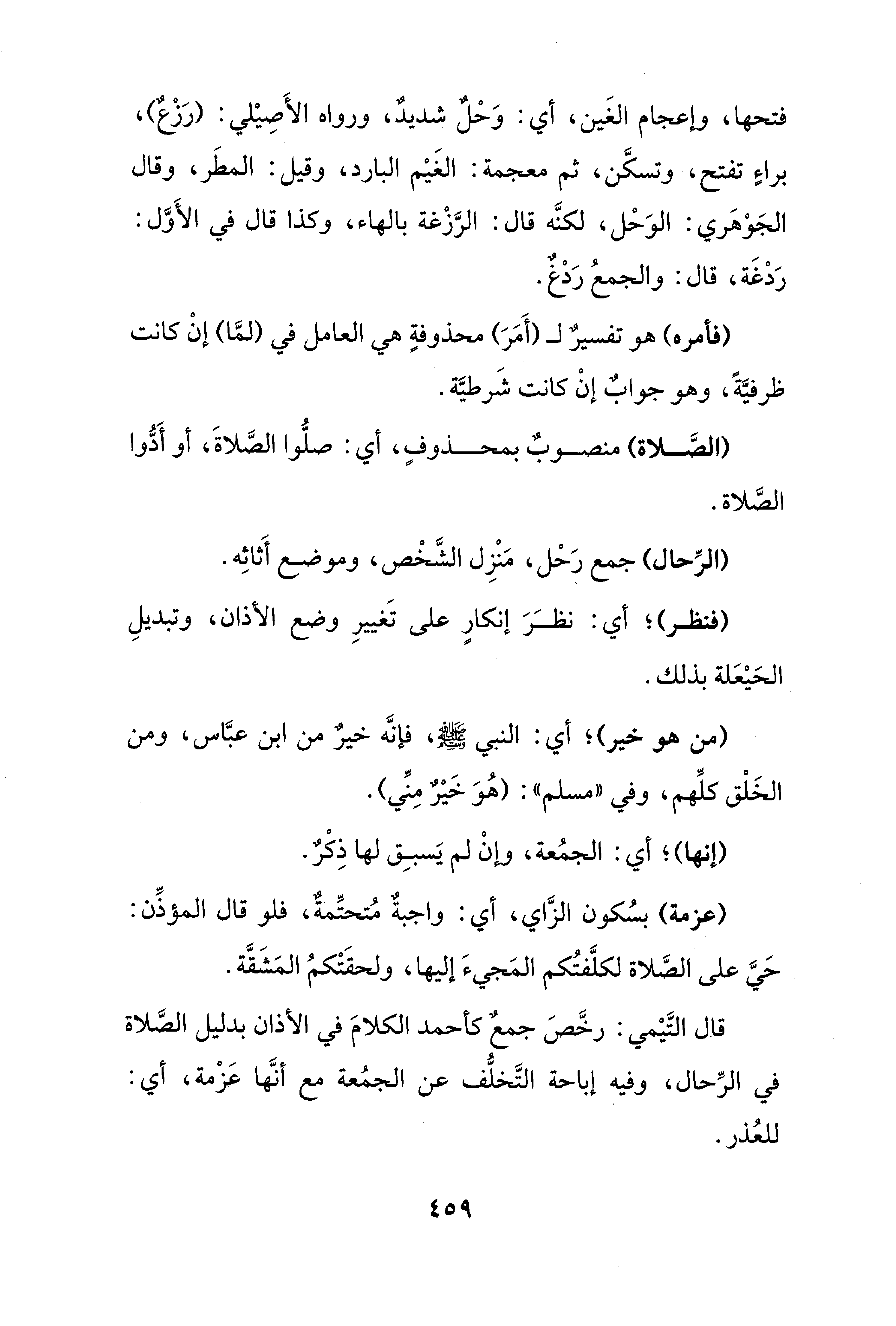 قال التَّيْمي: رخَّصَ جمعٌ كأحمد الكلامَ في الأذان بدليل الصَّلاة في الرِّحال، وفيه إباحة التَّخلُّف عن الجمُعة مع أنَّها عَزْمة، أي: للعُذر.
