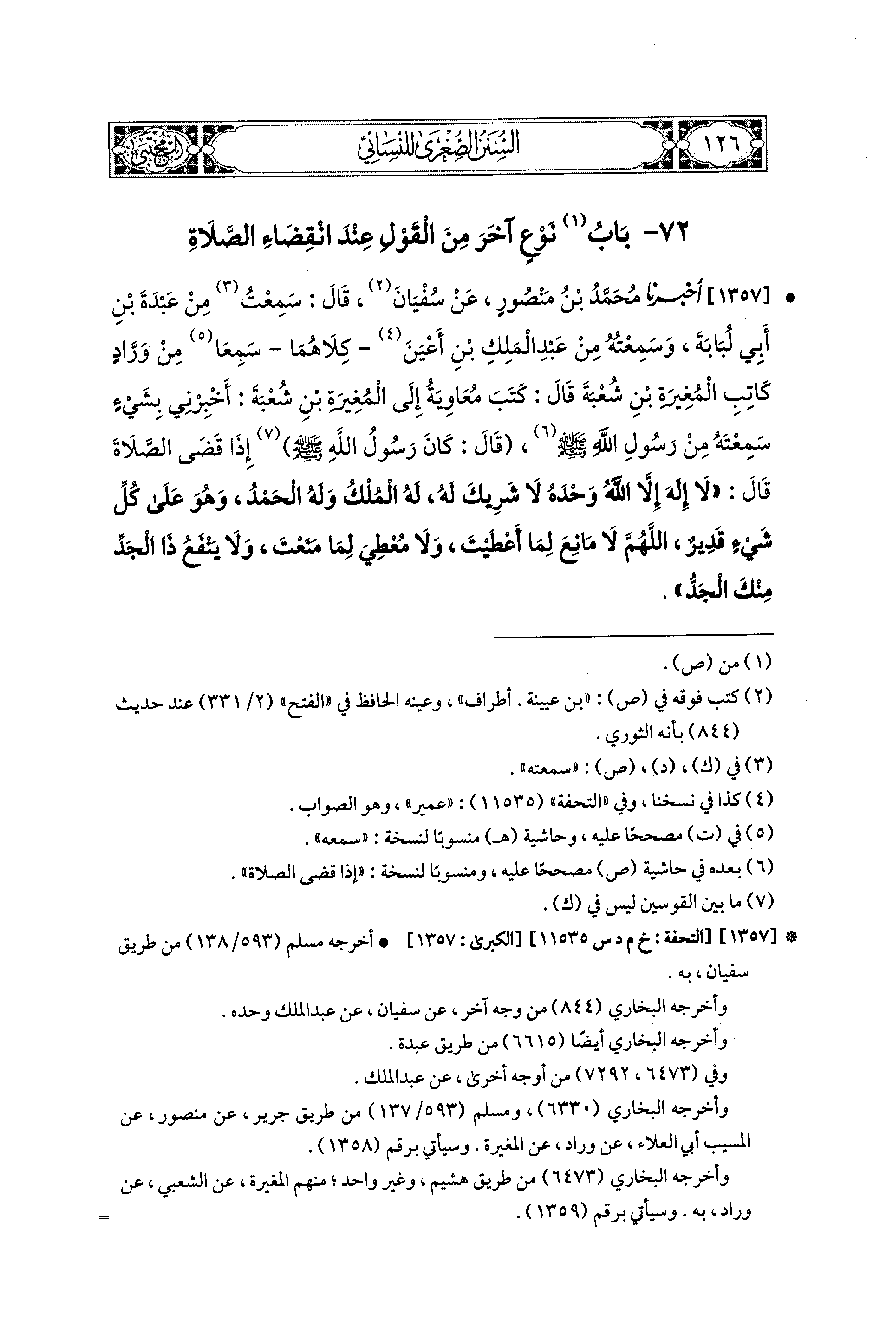 قَالَ أَبو عَبدِ الرَّحمَنِ: أَخبَرنا قُتَيبَةُ بِهَذَا الحَدِيثِ مَرَّتَيْنِ وَلَعَلَّهُ أَنْ يَكُونَ قَدْ سَقَطَ عَلَيْهِ مِنْهُ سَطْرٌ.