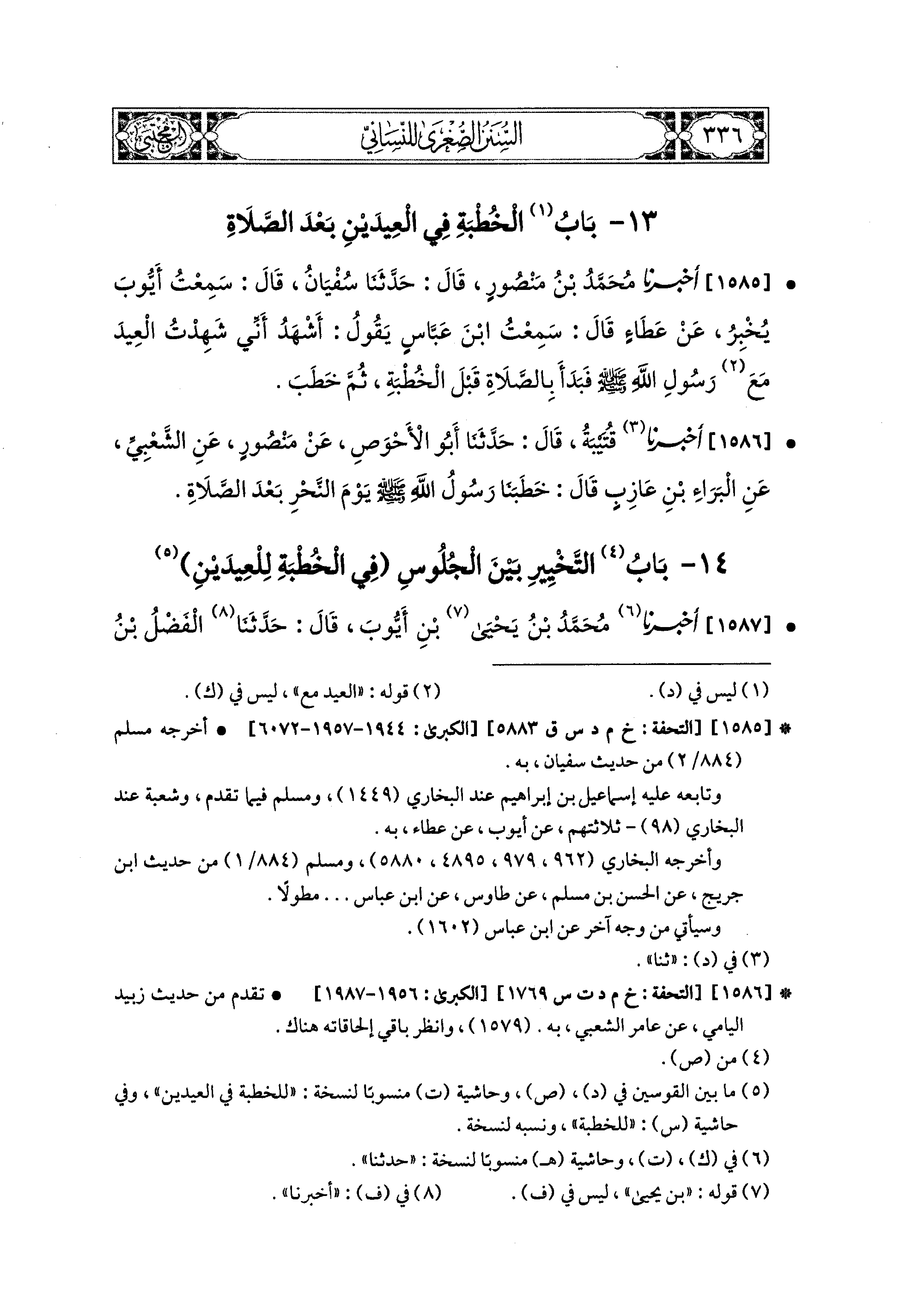 1517- أَخبَرَنا أَحْمَدُ بنُ سُلَيمَانَ، قال: حَدثنا أَبو دَاوُدَ الحُفَرِيُّ، عَن سُفيَانَ، عَنِ الأَسْوَدِ بْنِ قَيْسٍ، عَن ثَعْلَبَةَ بْنِ عَبَّادٍ، عَن سَمُرَةَ، أَنَّ النَّبيَّ صَلى الله عَليه وسَلم خَطَبَ حِينَ انْكَسَفَتِ الشَّمْسُ فَقَالَ: أَمَّا بَعْدُ.