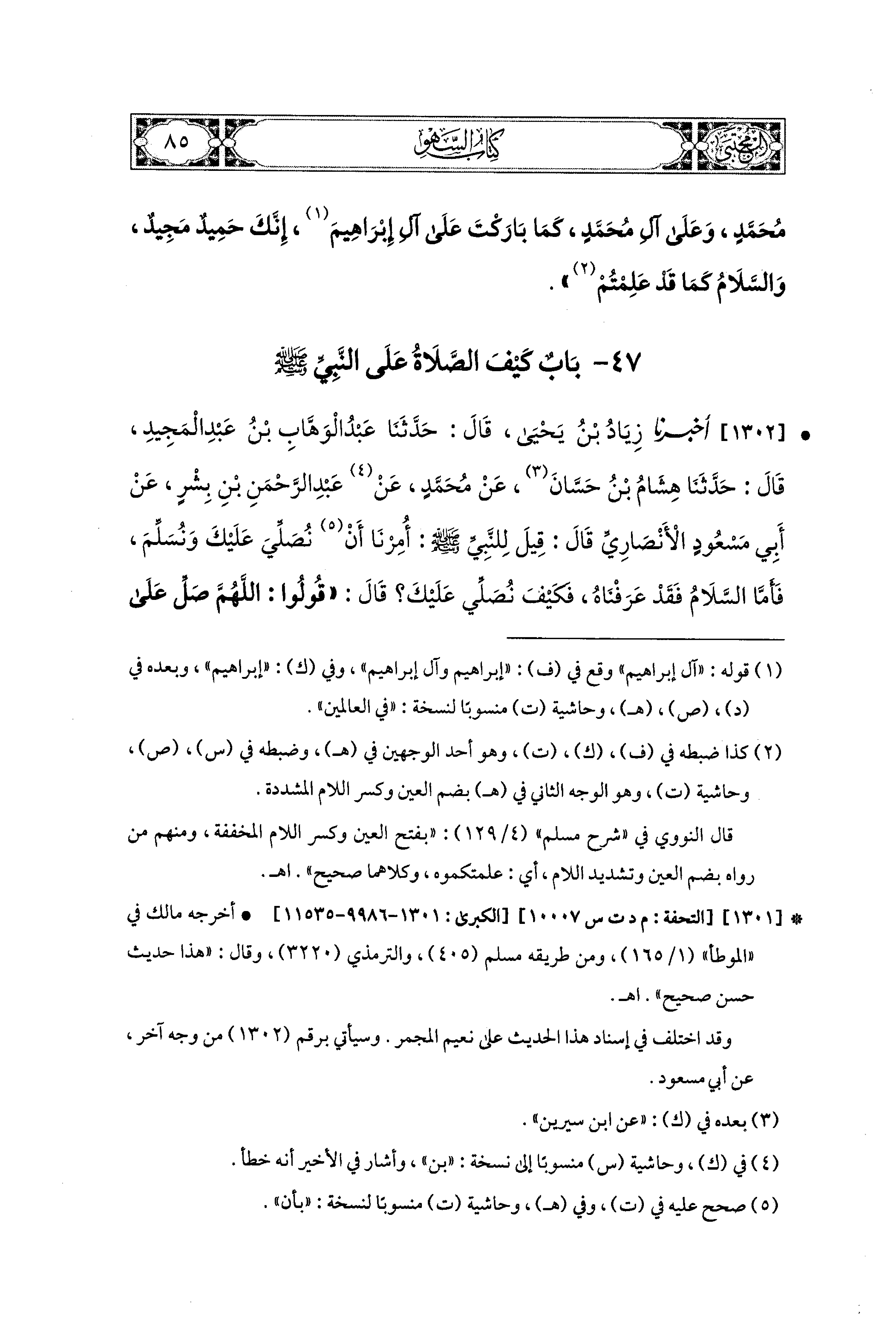 1269- أَخبَرَنا مُحَمد بنُ المُثَنَّى، وَمُحَمدُ بنُ بَشَّارٍ، وَاللَّفْظُ لاِبْنِ المُثَنَّى، قَالاَ: حَدَّثَنَا يَحيَى، عَن شُعبَةَ، عَنِ الحَكَمِ، عَن إِبراهِيمَ، عَن عَلْقَمَةَ، عَن عَبدِ اللهِ، قَالَ: صَلَّى النَّبيُّ صَلى الله عَليه وسَلم الظُّهْرَ خَمْسًا، فَقِيلَ لَهُ: أَزِيدَ فِي الصَّلاَةِ؟ قَالَ: وَمَا ذَاكَ؟ قَالُوا: صَلَّيْتَ خَمْسًا فَثَنَى رِجْلَهُ وَسَجَدَ سَجْدَتَيْنِ.