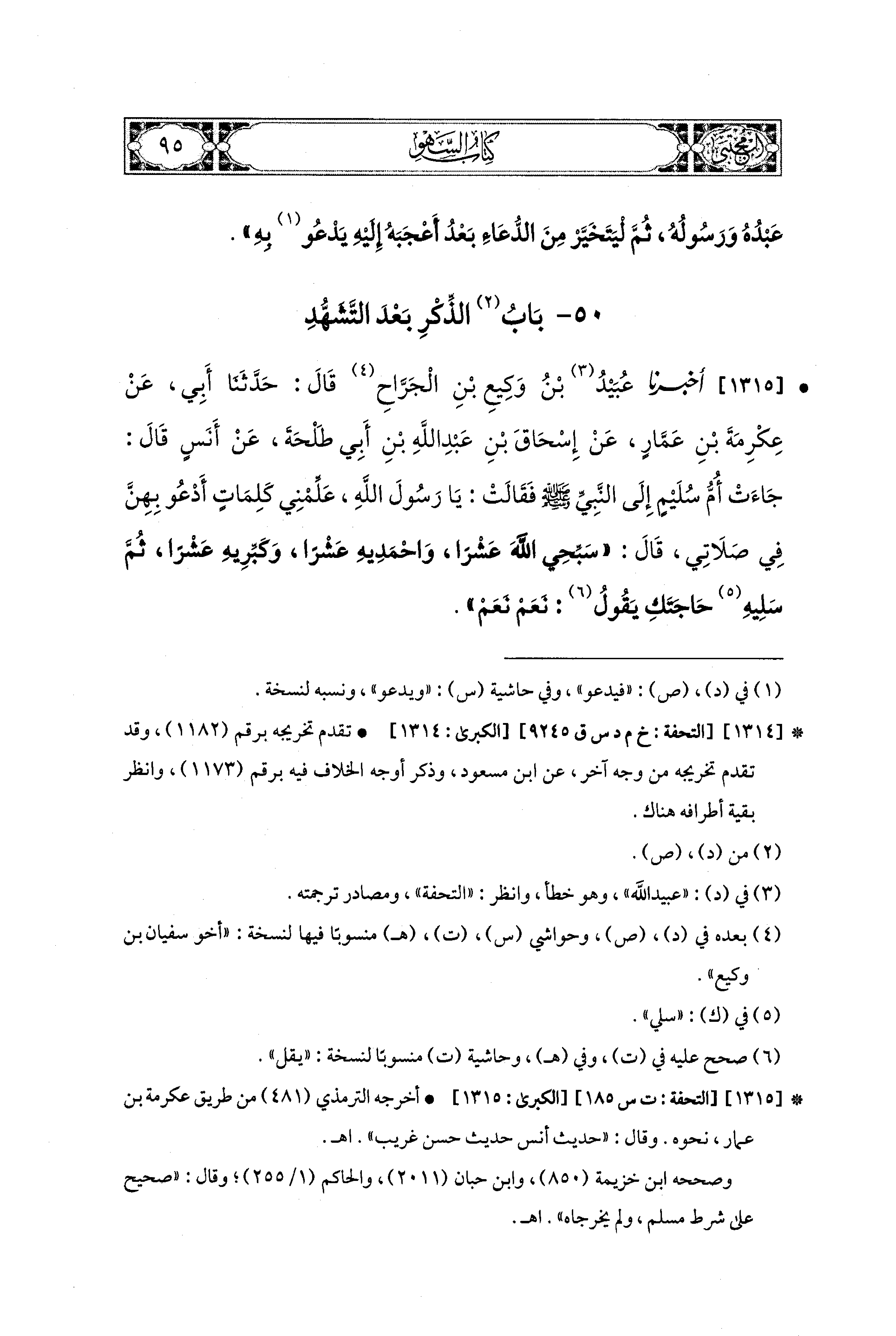 1279- أَخبَرَنا مُحَمد بنُ عَلِيِّ بْنِ مَيْمُونٍ الرَّقِّيُّ، قال: حَدثنا مُحَمدٌ، وَهُوَ ابْنُ يُوسُفَ الفِرْيَابيُّ، قال: حَدثنا سُفيَانُ، عَن عَاصِمِ بْنِ كُلَيْبٍ، عَن أَبِيهِ، عَن وَائِلِ بْنِ حُجْرٍ، أَنَّهُ رَأَى النَّبيَّ صَلى الله عَليه وسَلم جَلَسَ فِي الصَّلاَةِ، فَافْتَرَشَ رِجْلَهُ اليُسْرَى، وَوَضَعَ ذِرَاعَيْهِ عَلَى فَخِذَيْهِ، وَأَشَارَ بِالسَّبَّابَةِ يَدْعُو بِهَا.