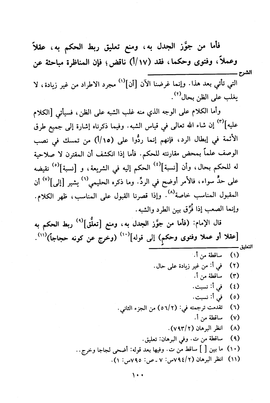 قال الإمام: (فأما من جوز الجدل به، ومنع [تعلق] ربط الحكم به [عقلًا أو عملًا وفتوى وحكمٍ) إلى قوله] (وخرج من كونه حجاجًا).