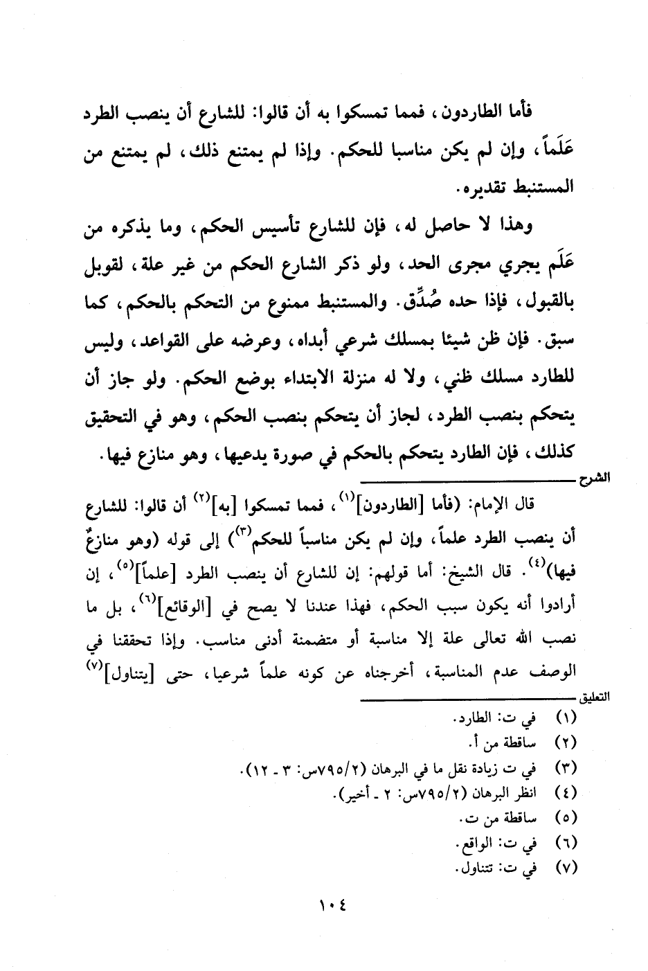 قال الإمام: (فأما [الطاردون]، فمما تمسكوا [به] أن قالوا: للشارع أن ينصب الطرد علمًا، وإن لم يكن مناسبًا للحكم) إلى قوله (وهو منازعٌ فيها). قال الشيخ: أما قولهم: إن للشارع أن ينصب الطرد [علمًا]، إن أرادوا أن يكون سبب الحكم، فهذا عندنا لا يصح في [الوقائع]، بل ما نصب الله تعالى علة إلا مناسبة أو متضمنة أدنى مناسب. وإذا تحققنا في الوصف عدم المناسبة، أخرجناه عن كونه علمًا شرعيًا، حتى [يتناول]