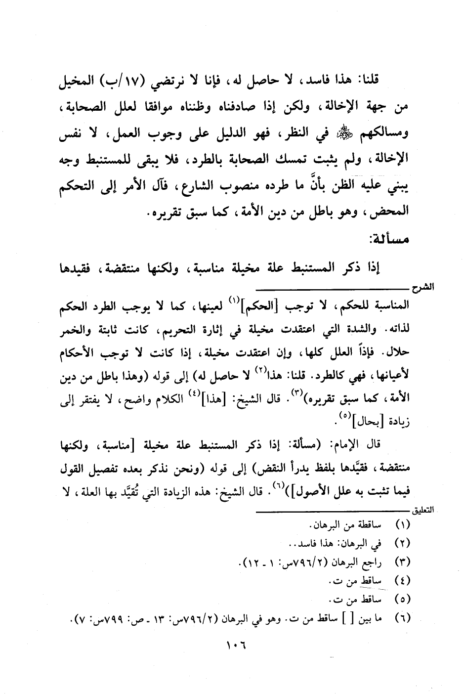 قال الإمام: (مسألة: إذا ذكر المستنبط علة مخيلة [مناسبة، ولكنها منتقضة، فقيدها بلفظ يدرأ النقض) إلى قوله (ونحن نذكر بعده تفصيل القول فيما تثبت به علل الأصول]). قال الشيخ: هذه الزيادة التي تقيد بها العلة، لا