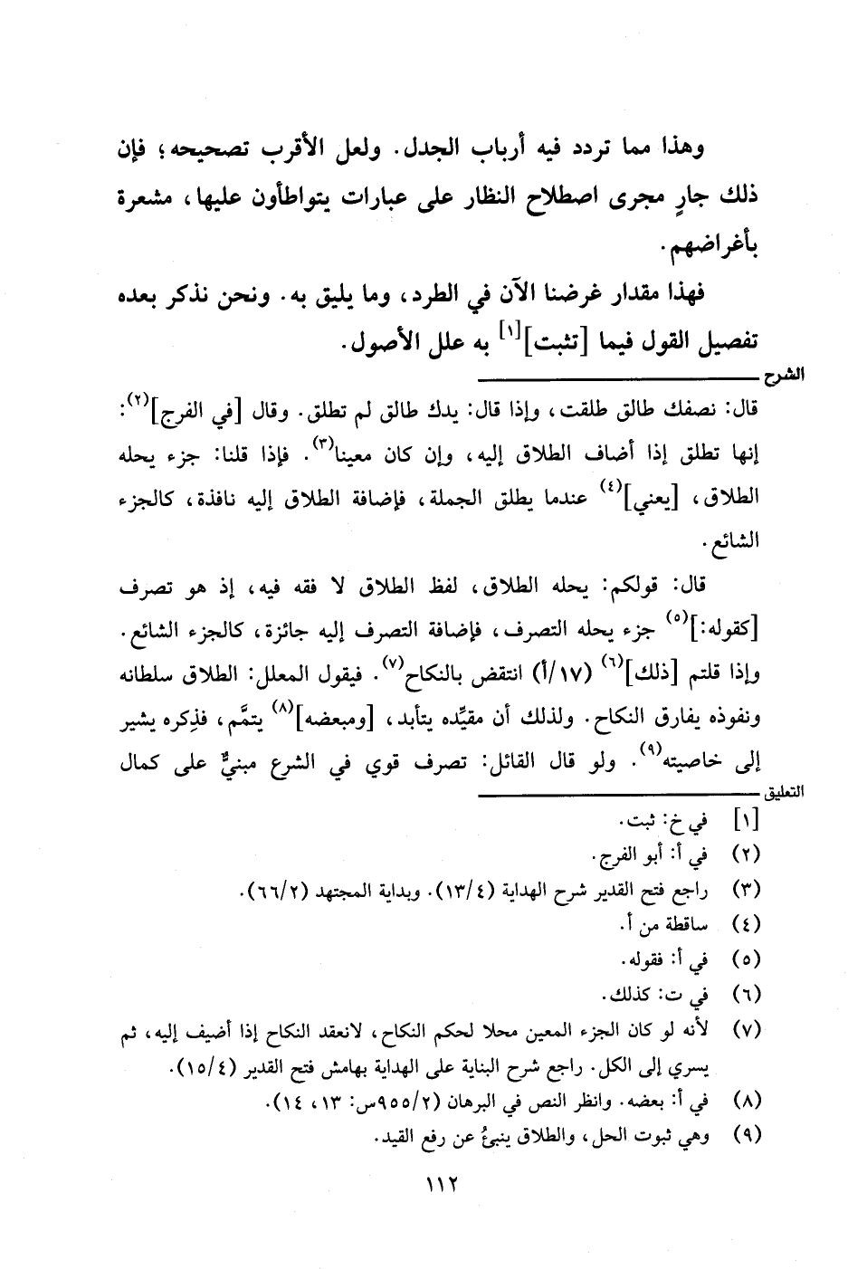 قال: قولكم: يحله الطلاق، لفظ الطلاق لا فقه فيه، إذ هو تصرف [كقوله: ] جزء يحل التصرف، فإضافة التصرف إليه جائزة، كالجزء الشائع. وإذا قلتم [ذلك] (١٧/أ) انتقض بالنكاح. فقول المعلل: الطلاق سلطانه ونفوذه يفارق النكاح. ولذلك أن مقيده يتأبد، [ومبعضه] يتمم، فذكره يشير إلى خاصيته. ولو قال القائل: تصرف قوي في الشرع مبنيٌّ على كمال