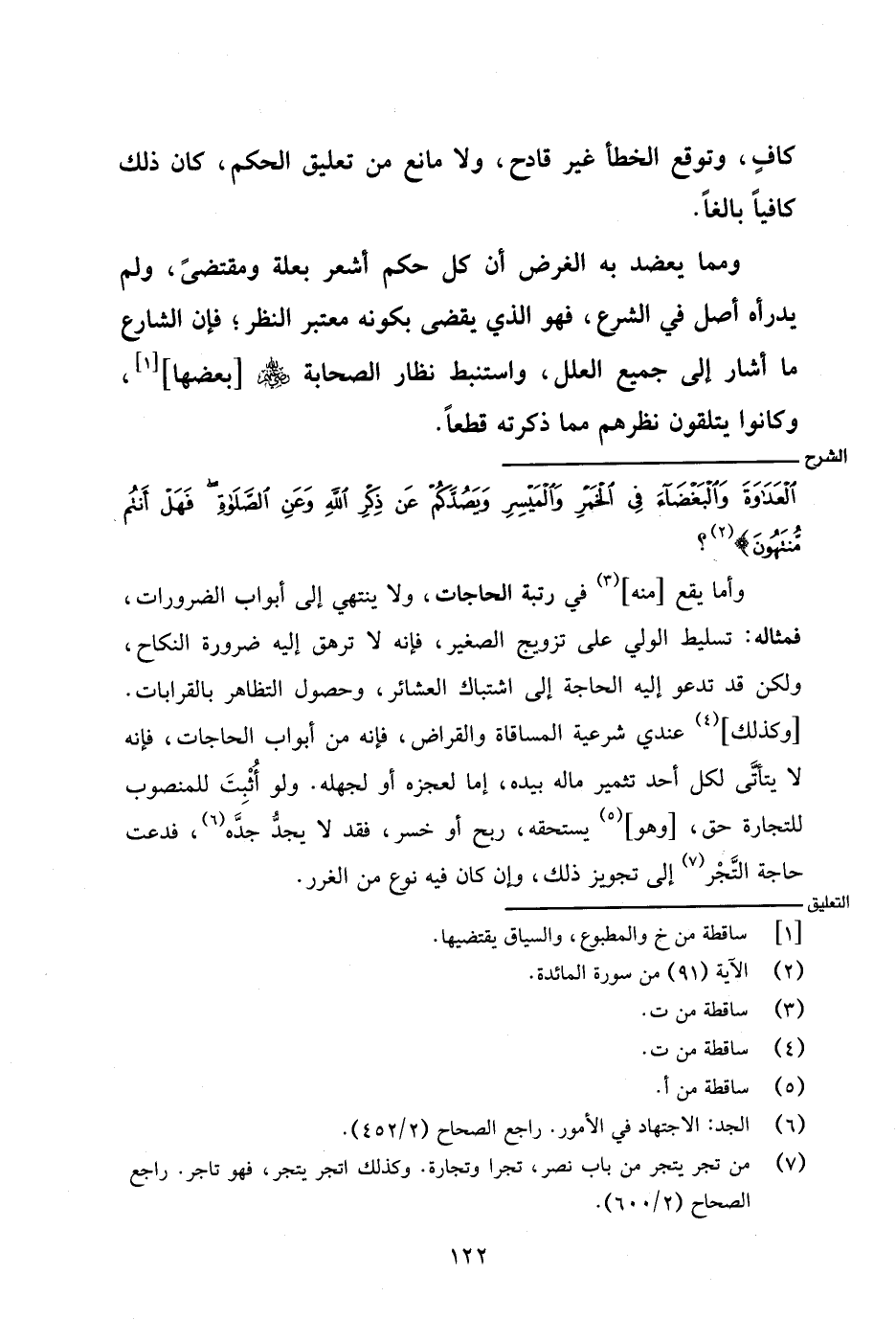 وأما يقع [منه] في رتبة الحاجات، ولا ينتهي إلى أبواب الضرورات، فمثاله: تسليط الولي على تزويج الصغير، فإنه لا ترهق إليه ضرورة النكاح، ولكن قد تدعو إليه الحاجة إلى اشتباك العشائر، وحصول التظاهر بالقرابات. [وكذلك] عندي شرعية المساقاة والقراض، فإنه من أبواب الحاجات، فإنه لا يتأتى لكل أحد تثمير ماله بيده، إما لعجزه أو لجهله. ولو أثبت للمنصوب للتجارة حق، [وهو] يستحقه، ربح أو خسر، فقد لا يجد جده، فدعت حاجة التجر إلى تجويز ذلك، وإن كان فيه نوع من الغرر.