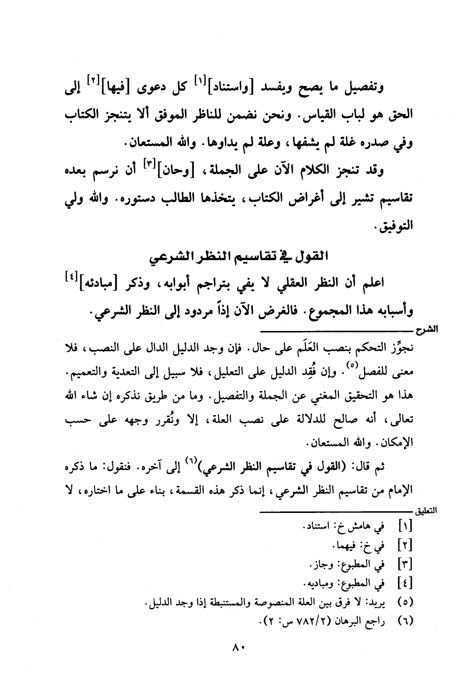 ثم قال: (القول في تقاسيم النظر الشرعي) إلى آخره. فنقول: ما ذكره الإمام من تقاسيم النظر الشرعي، إنما ذكر هذه القسمة، بناء على ما اختاره، لا