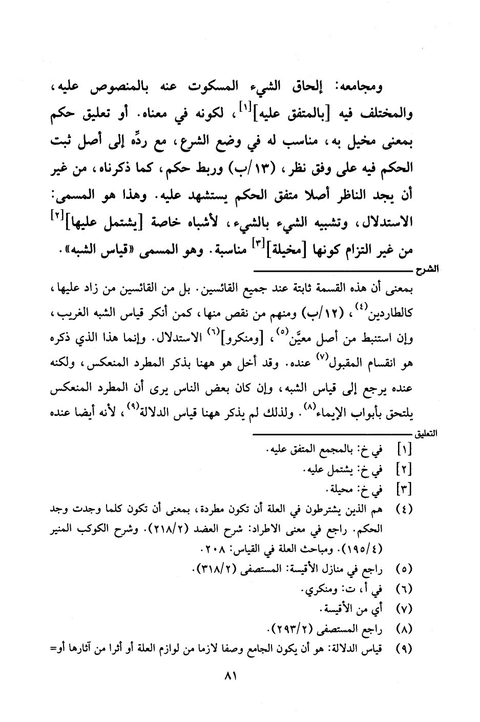 بمعنى أن هذه القسمة ثابتة عند جميع القائسين. بل من القائسين من زاد عليها، كالطاردين، (١٢/ب) ومنهم من نقص منها، كمن أنكر قياس الشبه الغريب، وإن استنبط من أصل معين، [ومنكروا] الاستدلال. وإنما هذا الذي ذكره هو انقسام المقبول عنده. وقد أخل هو ههنا بذكر المطرد المنعكس، ولكنه عنده يرجع إلى قياس الشبه، وإن كان بعض الناس يرى أن المطرد المنعكس يلتحق بأبواب الإيماء. ولذلك لم يذكر ههنا قياس الدلالة، لأنه أيضًا عنده