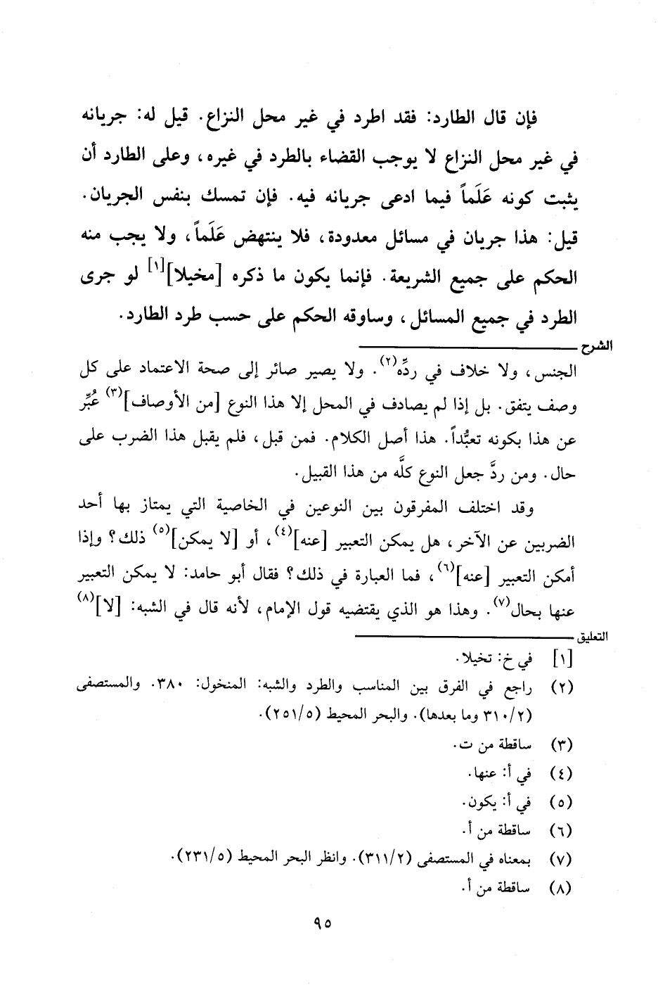 وقد اختلف المفرقون بين النوعين في الخاصية التي يمتاز بها أحد الضربين عن الآخر، هل يمكن التعبير [عنه] أو [لا يمكن] ذلك؟ وإذا أمكن التعبير [عنه]، فما العبارة في ذلك؟ فقال أبو حامد: لا يمكن التعبير عنها بحال. وهذا هو الذي يقتضيه قول الإمام، لأنه قال في الشبه: [لا]